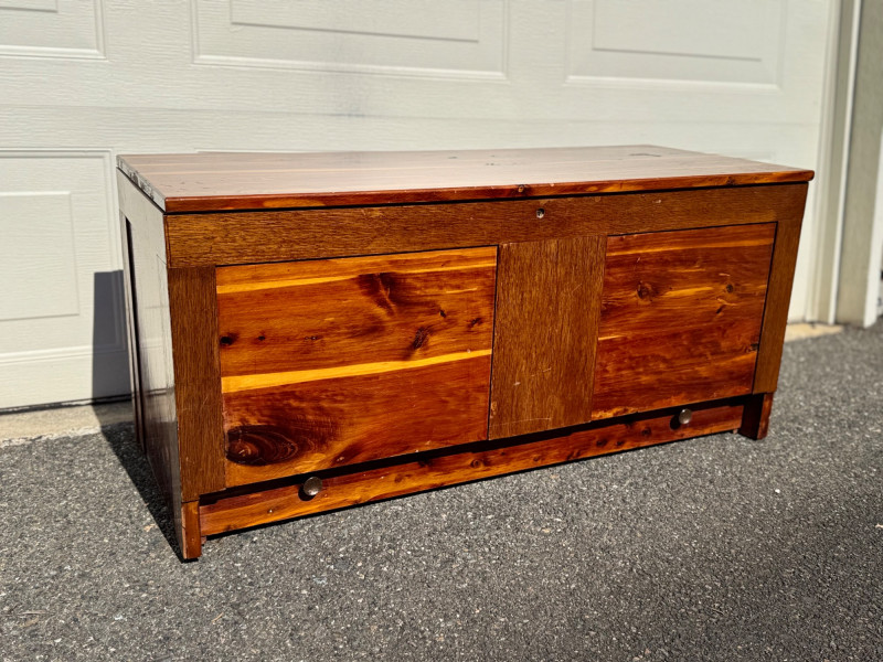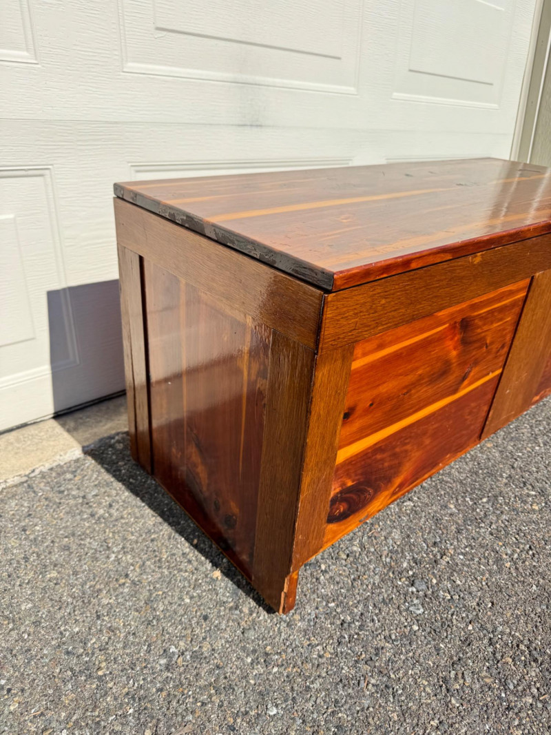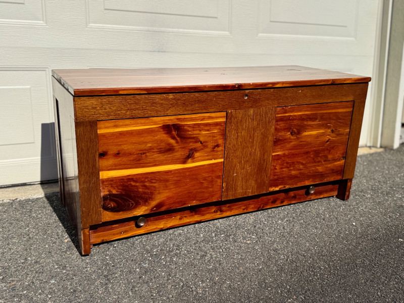 Vintage Cedar Hope Chest W/ Sliding Tray, Warm Two-Tone Finish.