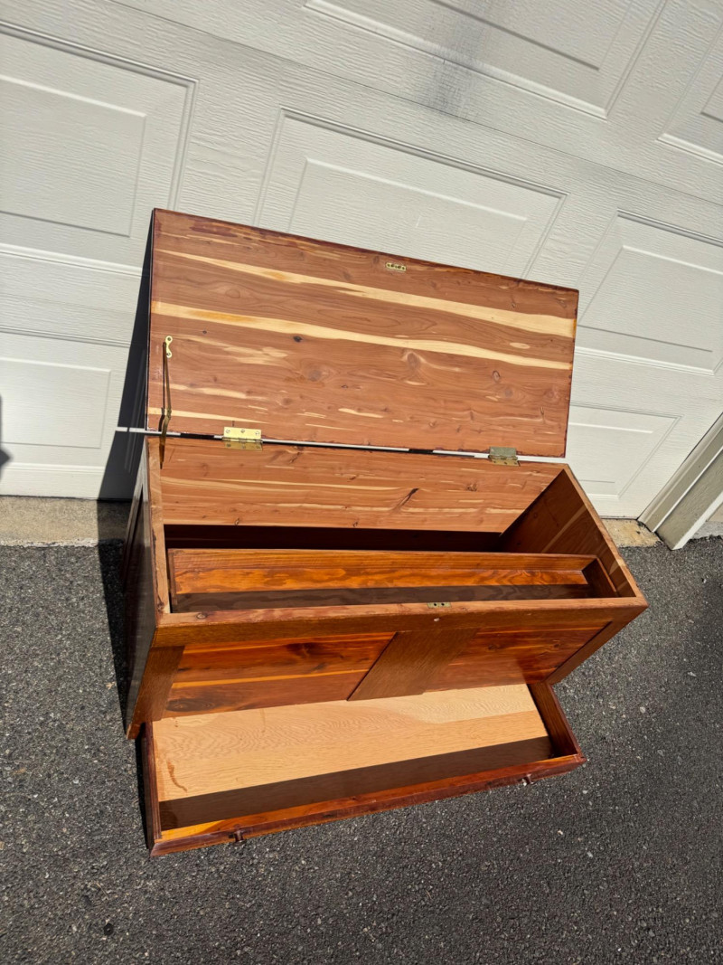 Lot # 28 - Vintage Cedar Hope Chest W/ Sliding Tray, Warm Two-Tone Finish