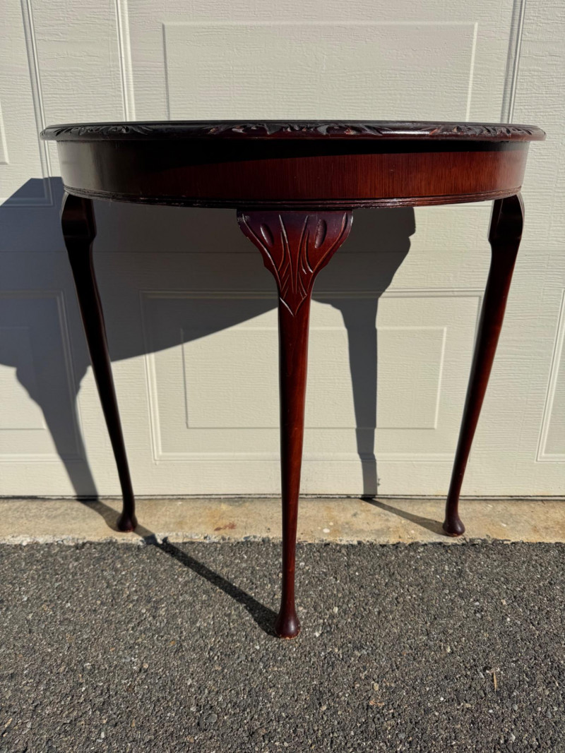 Lot # 30 - Vintage Half-Round Wood Accent Table w/ Embossed Red Top