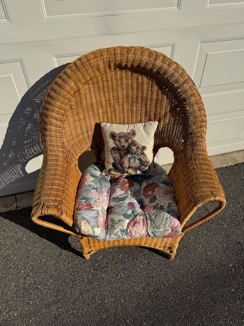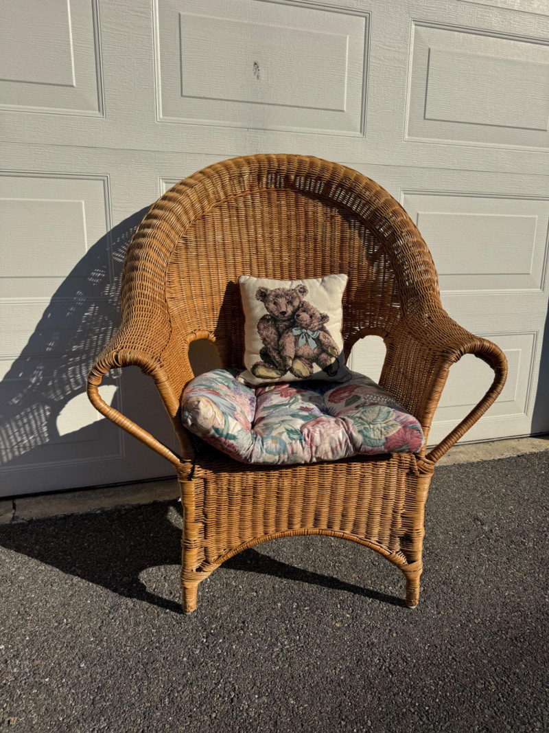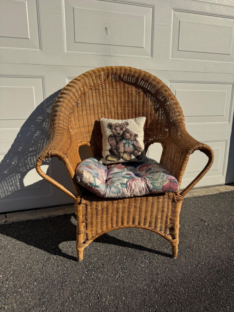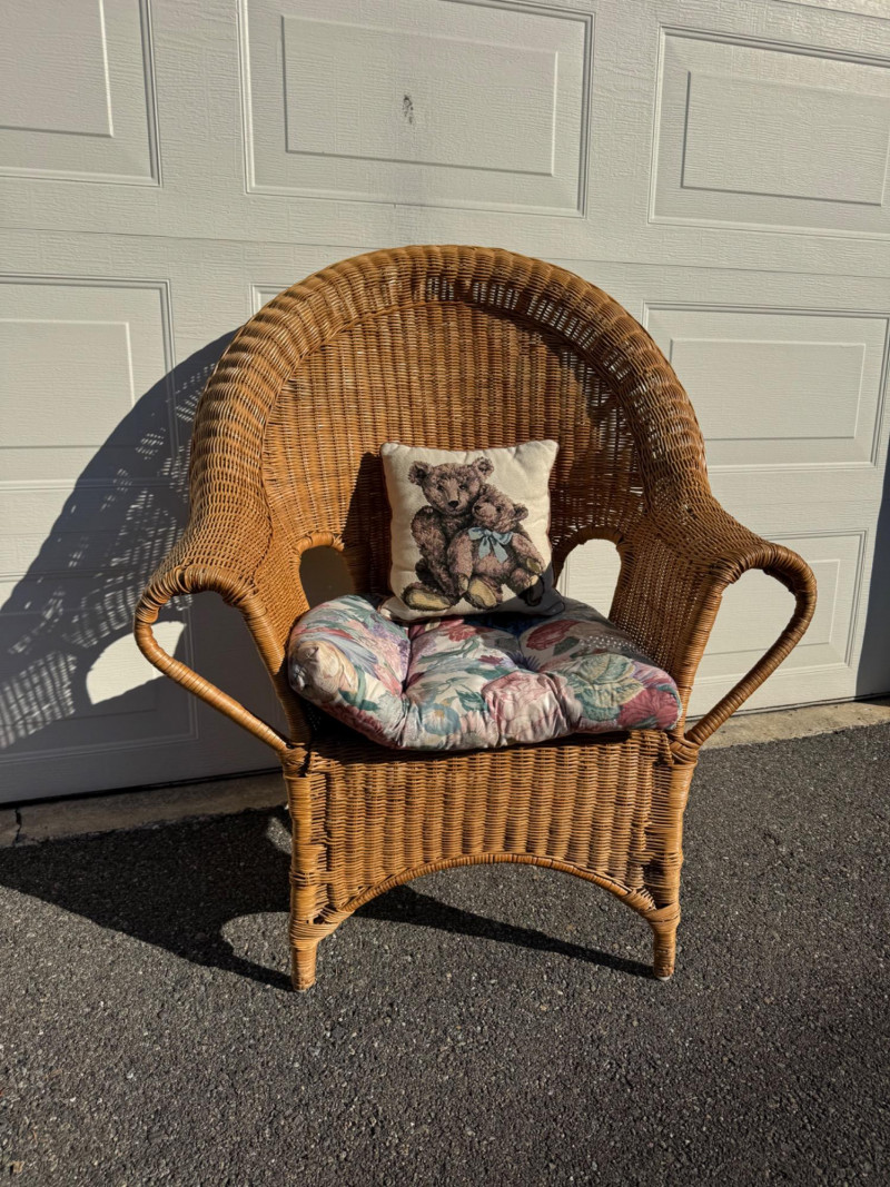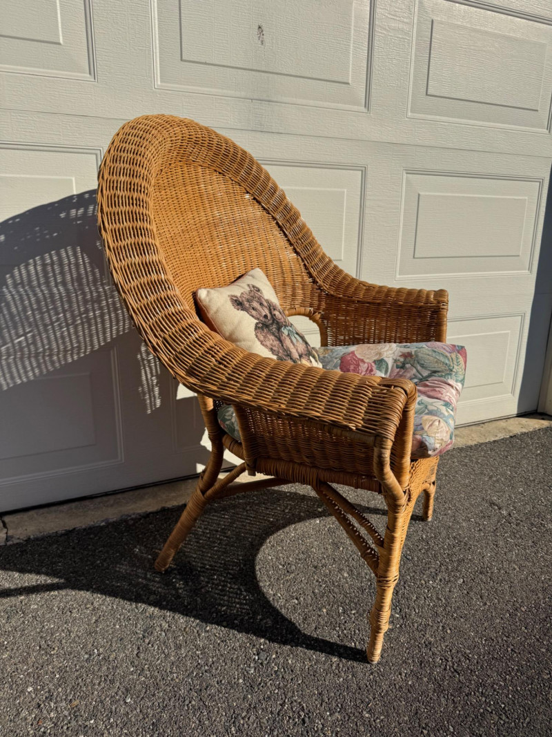 Wicker Peacock Chair w/ Cushion & Pillow.