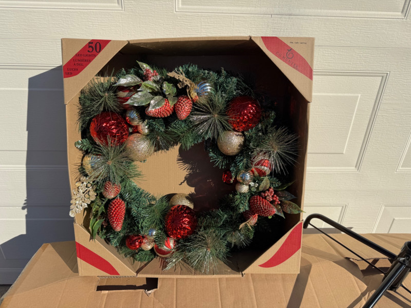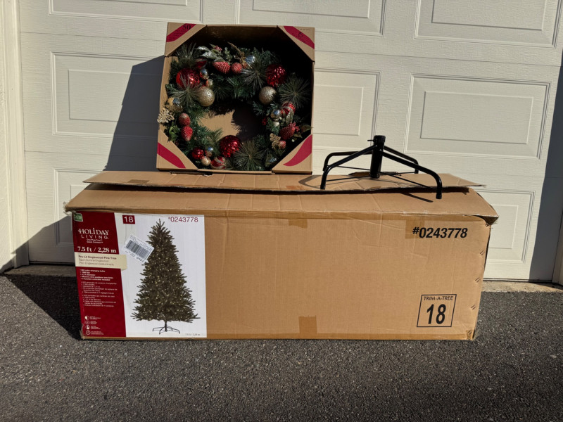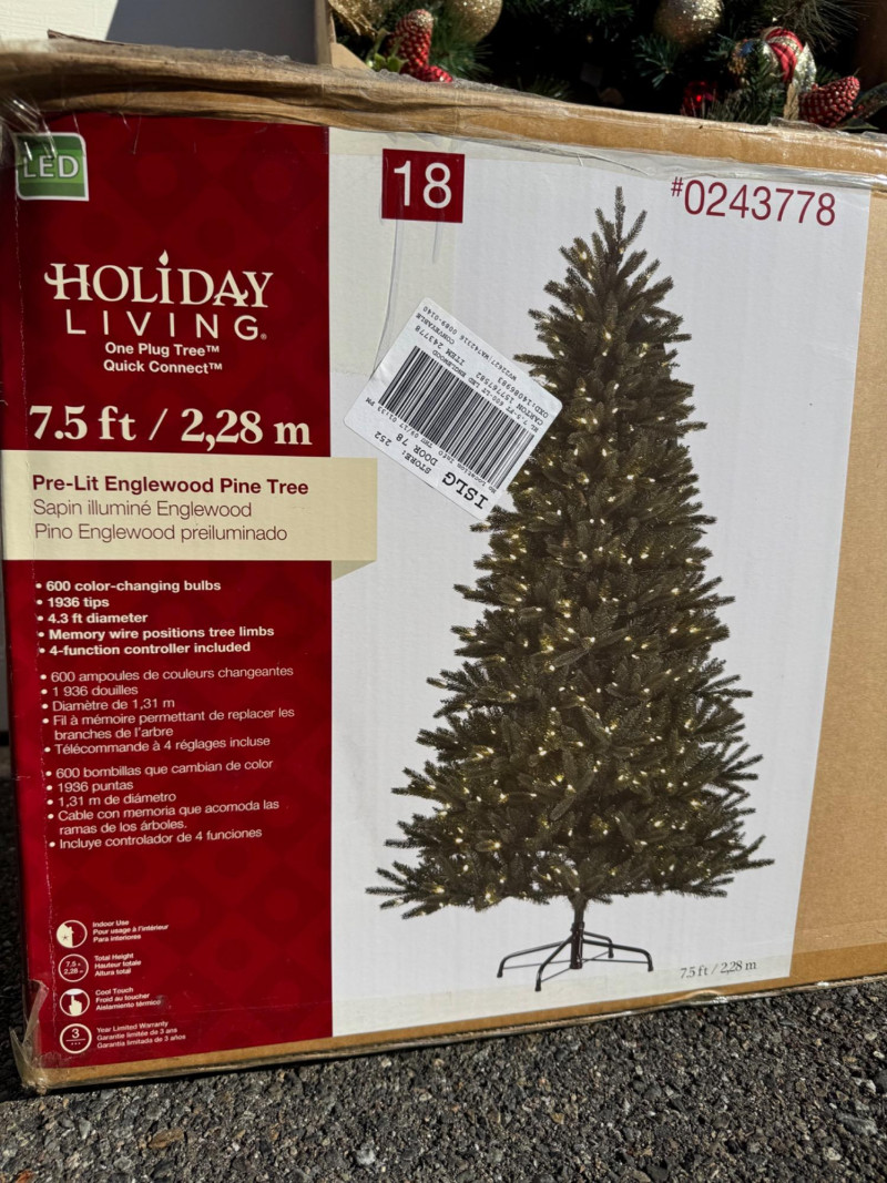 Holiday Living 7.5ft Pre-Lit Englewood Tree & 30” LED Wreath Set.