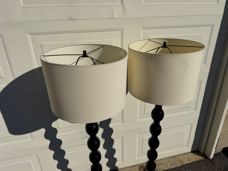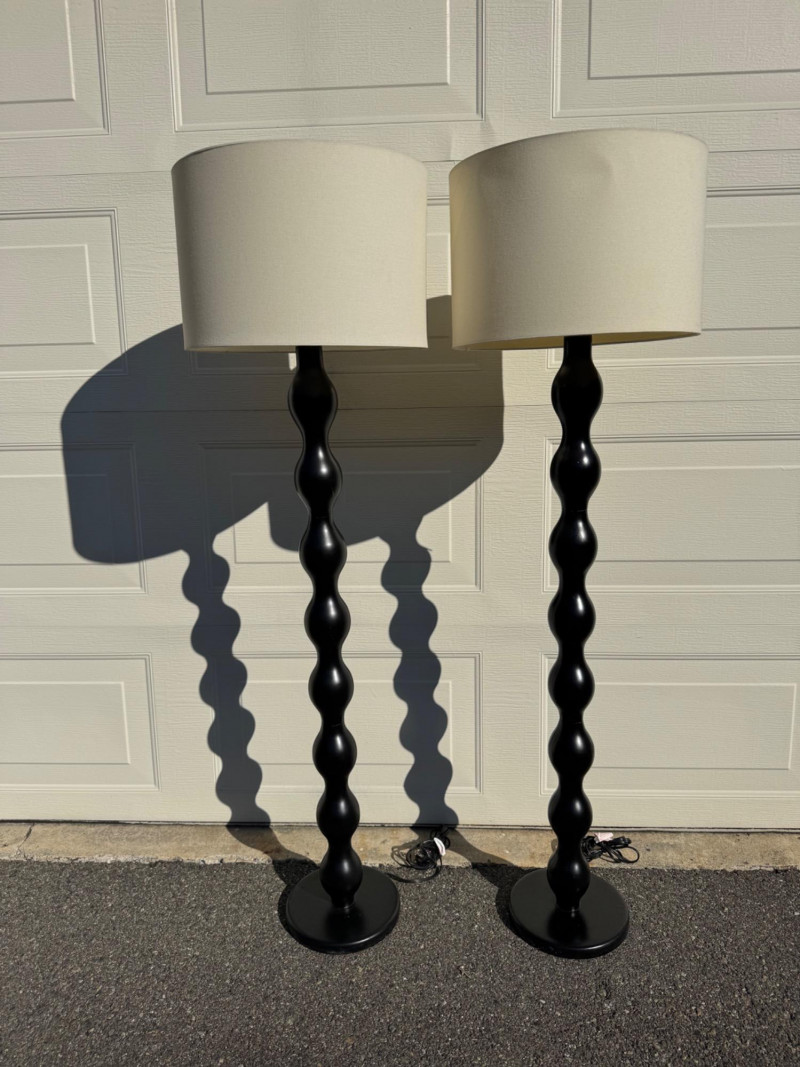 Lot # 34 - Pair of Black Floor Lamps w/ Wavy Column Base & Drum Shades
