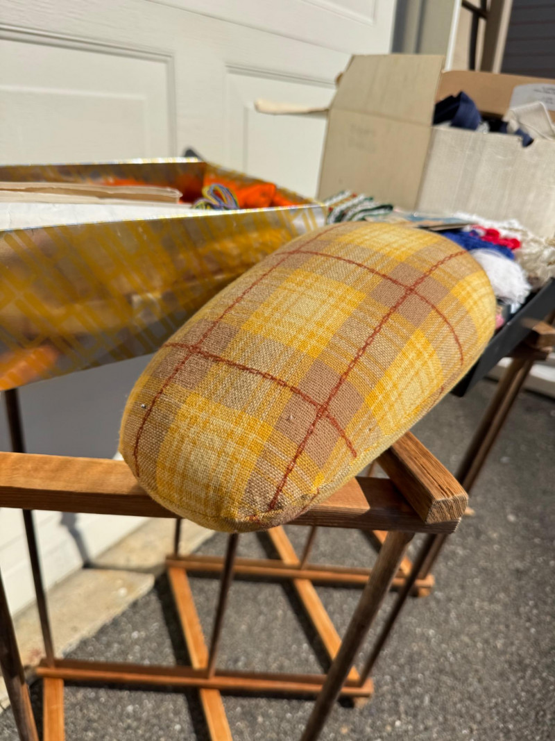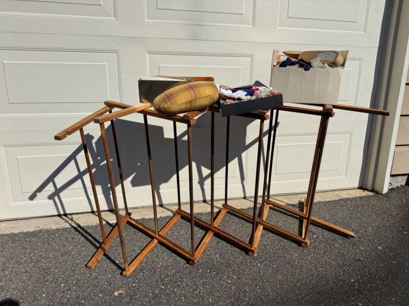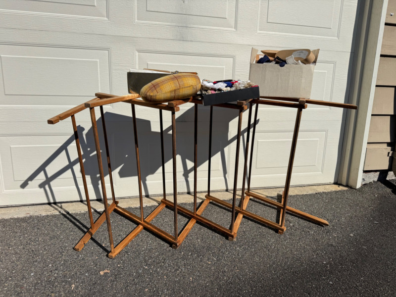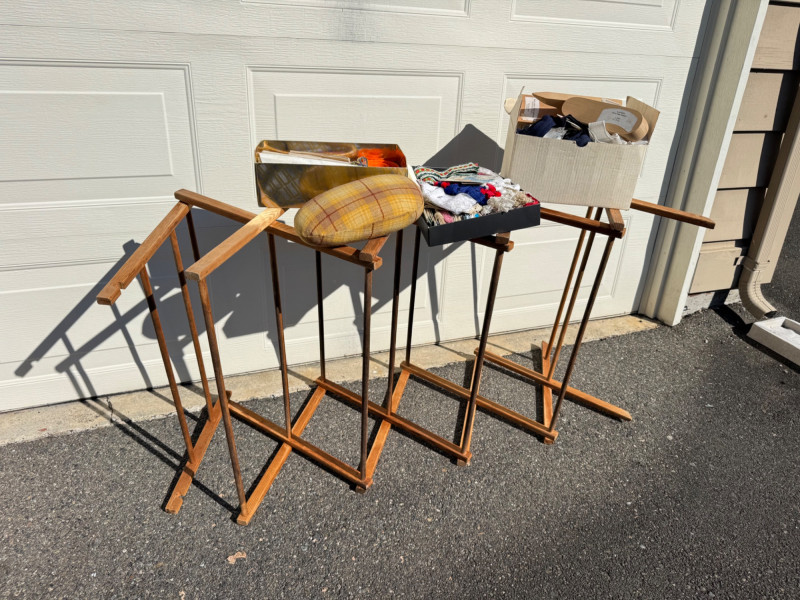 Vintage Wooden Clothes Drying Rack w/ Knitting & Sewing Supplies.