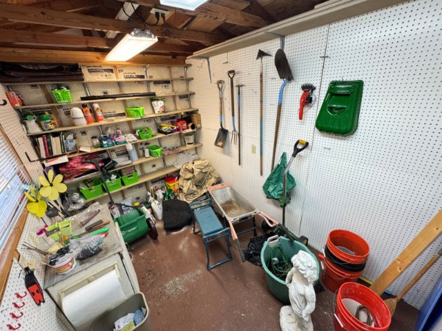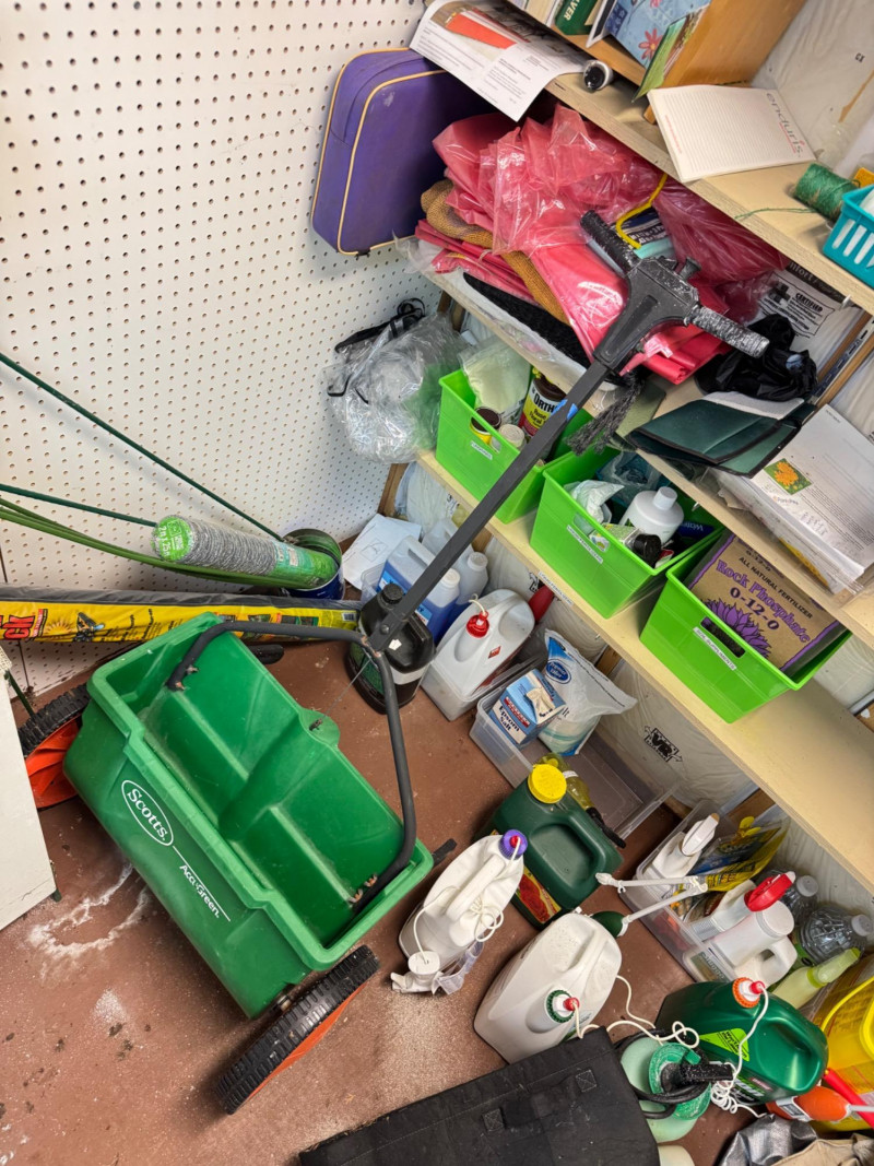 Garden Shed Lot – Tools, Supplies, Planters & Accessories + Includes assorted hand tools (rakes, shovels, hoes, trowels, etc.)