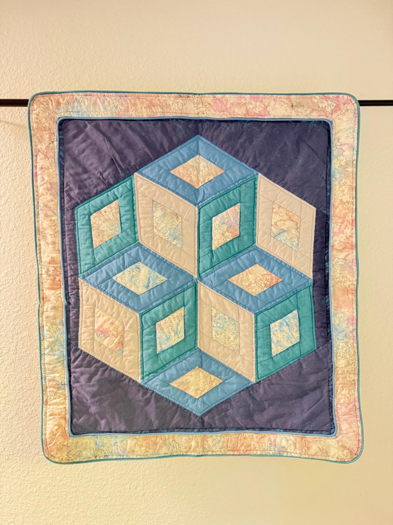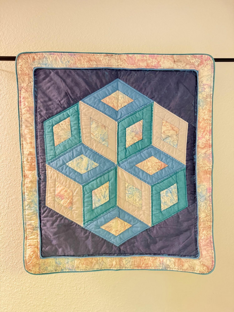 Handmade Geometric Quilt Wall Hanging w/ Pocket.