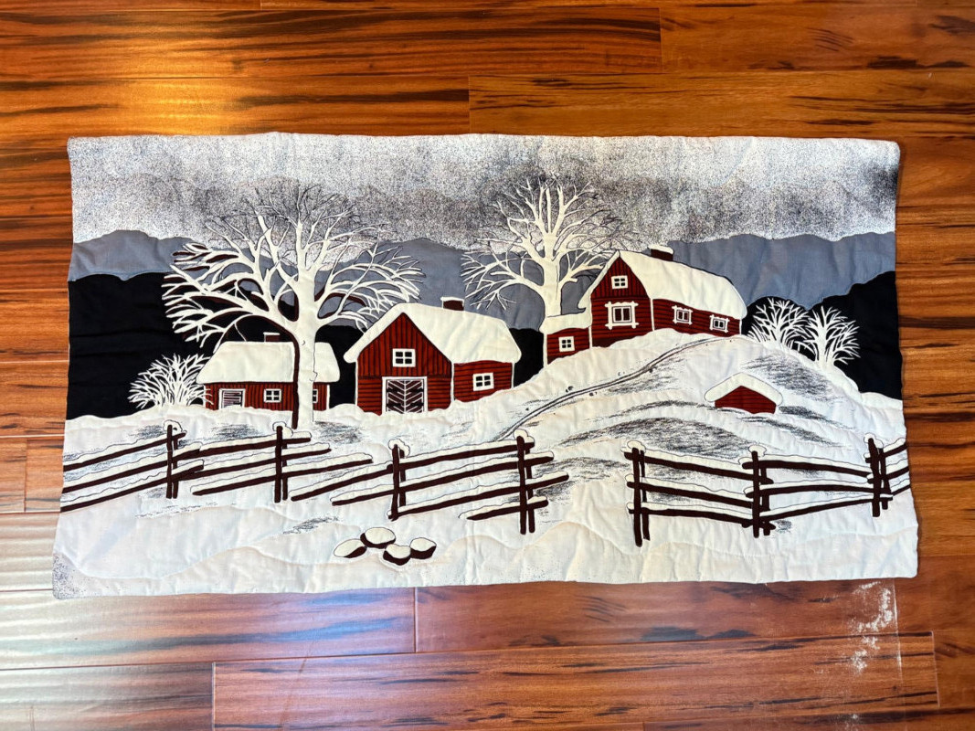 Lot # 22 - Winter Farm Scene Quilted Wall Hanging w/ Pocket