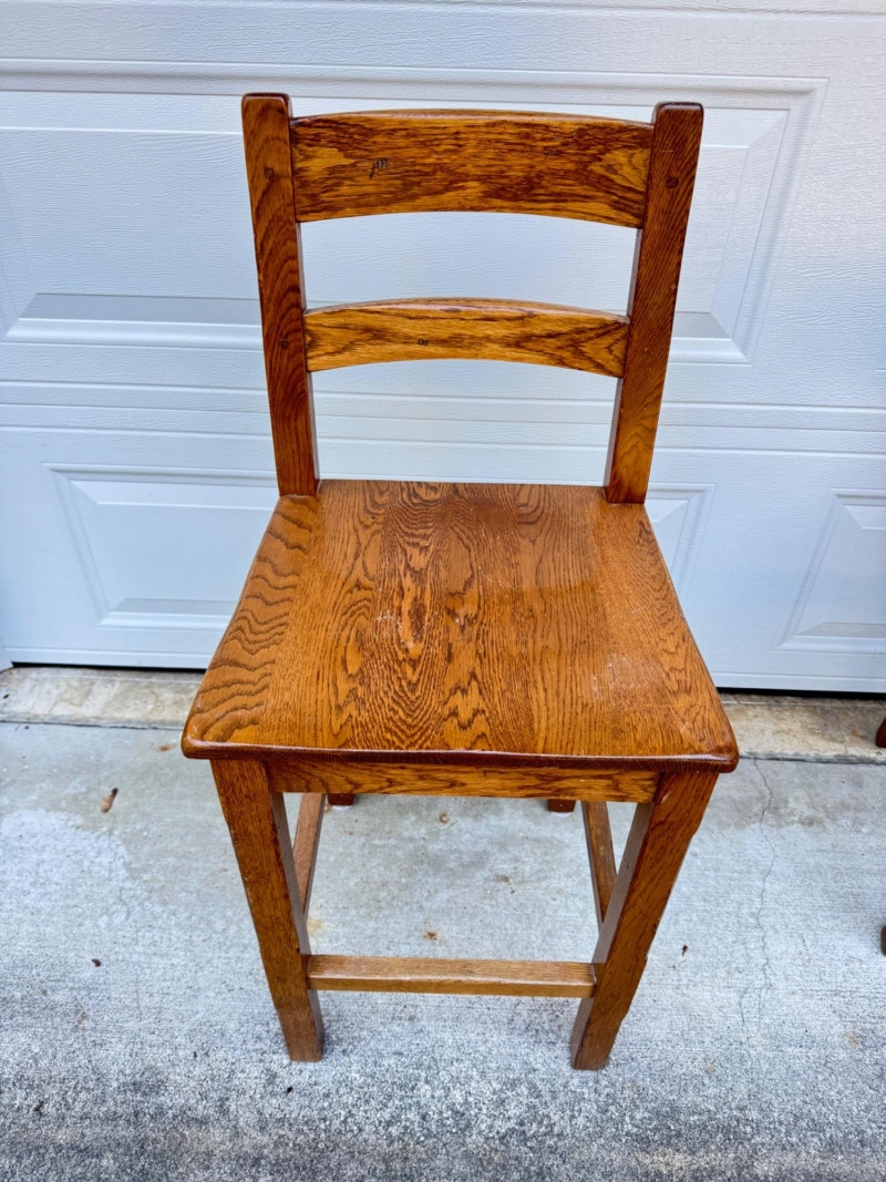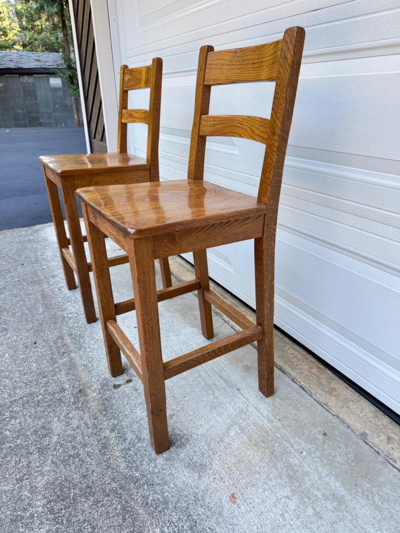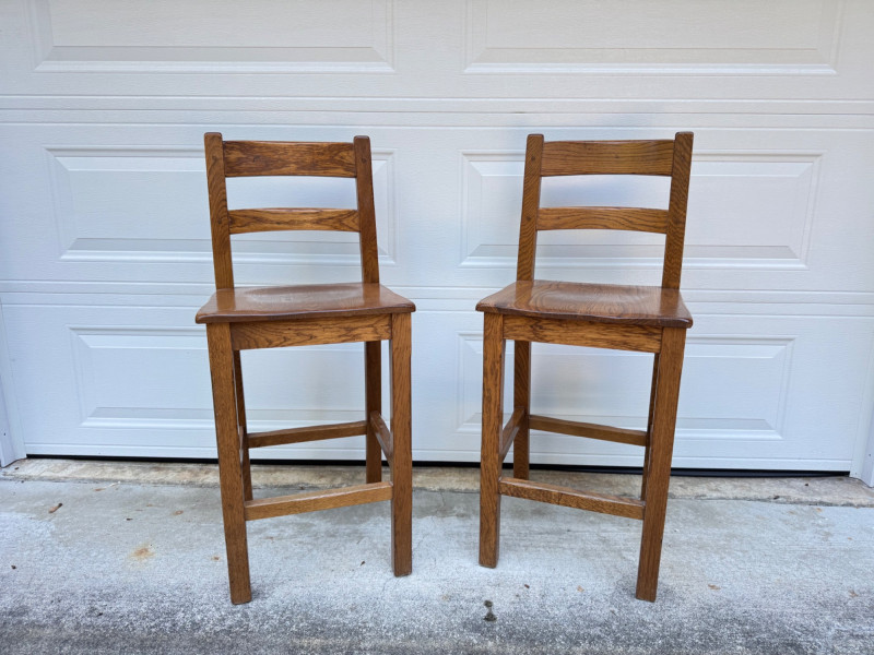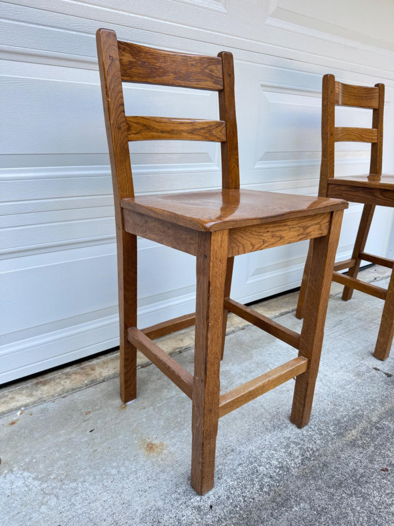 Pair of Wooden Bar Stools – Ladder Back Design.