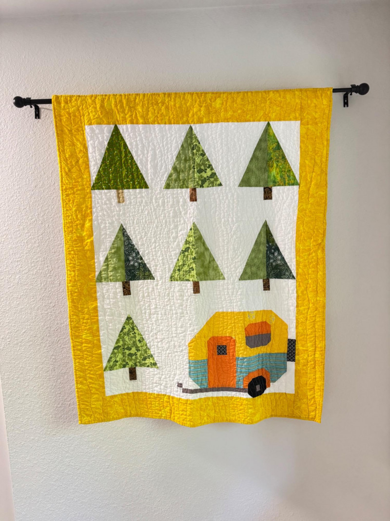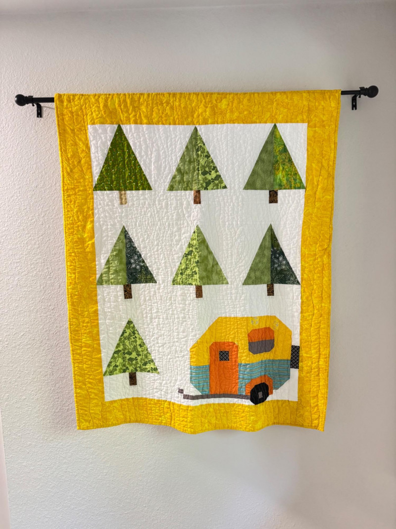 Lot # 25 - Handmade Quilt Wall Hanging – Camper & Pine Tree Design w/ Pocket