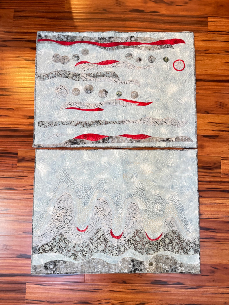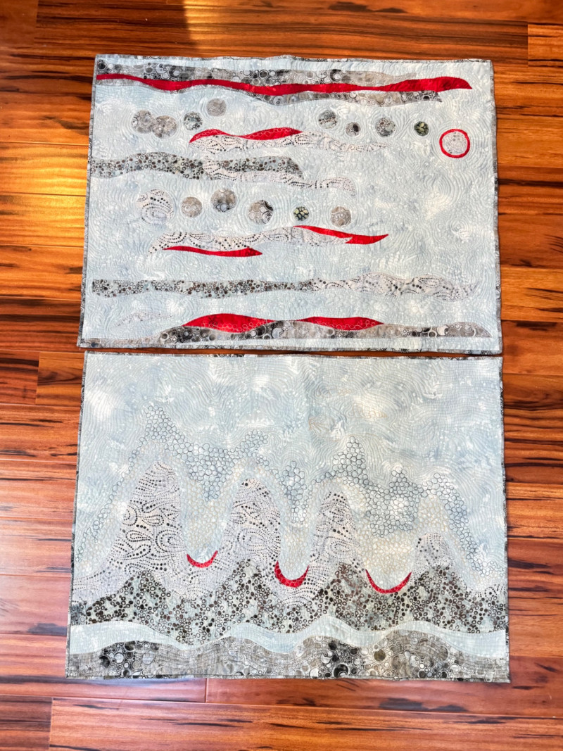 Set of 2 Abstract Wall Hangings – Free Motion Quilting.