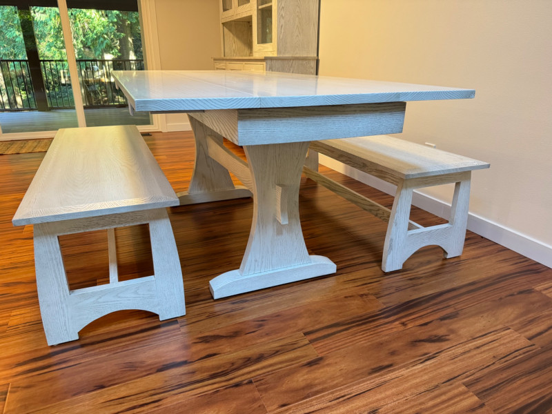 Amish Style Wood Dining Table & Benches – Bothell Furniture, $5,500.