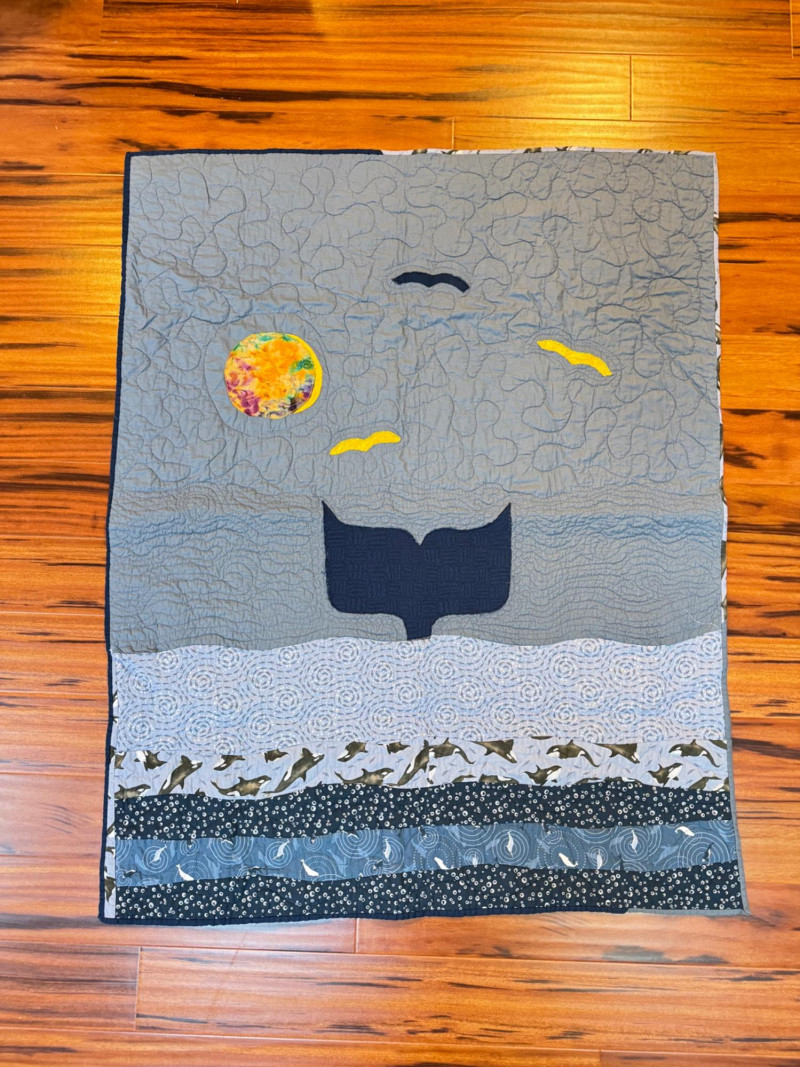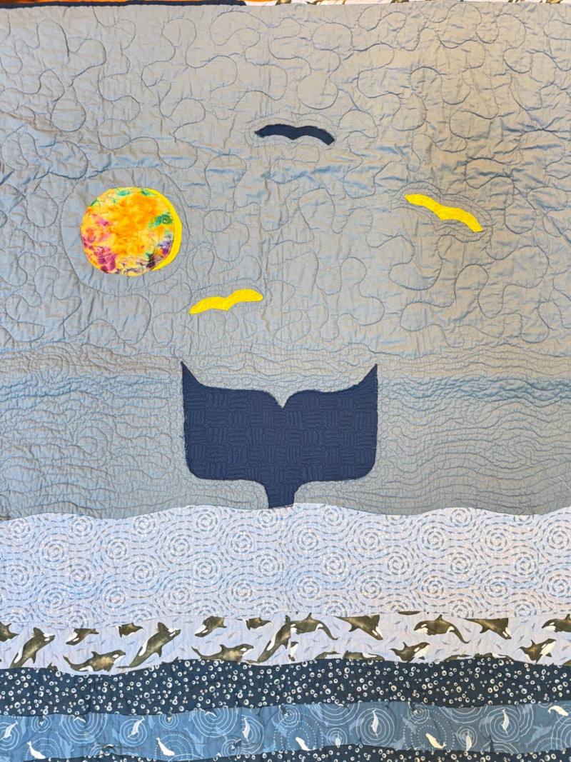 Whale Tail & Ocean Theme Quilt – Free Motion Quilted.