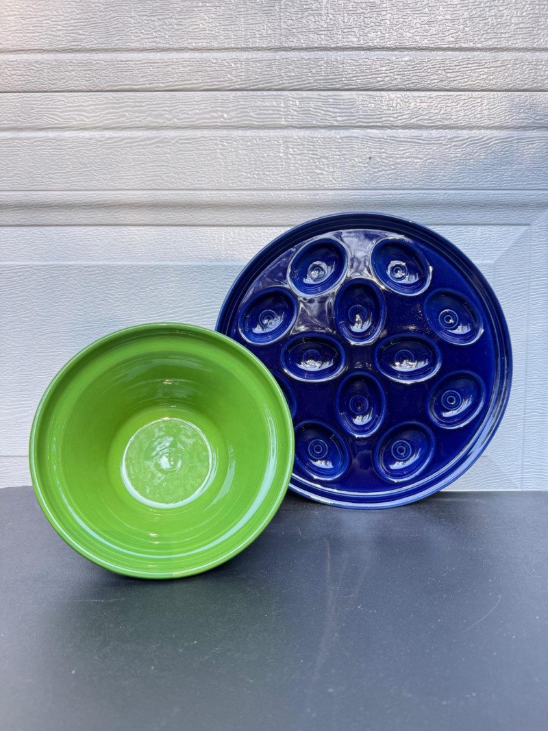 Fiesta Ware Lot – Cobalt Blue Egg Plate & Green Serving Bowl.