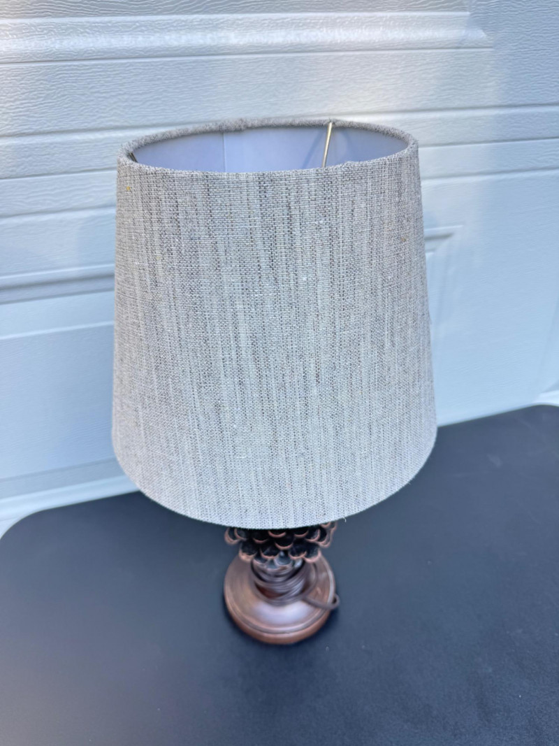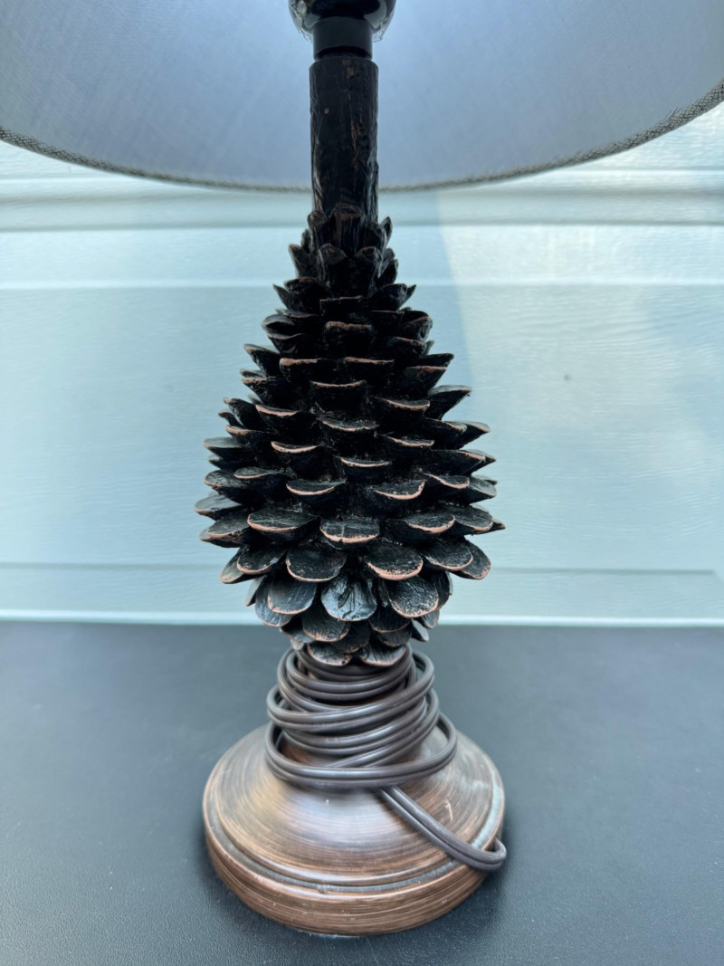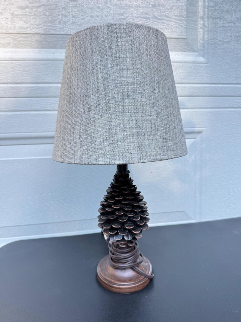 Rustic Pinecone Table Lamp w/ Textured Shade – 19” Tall.