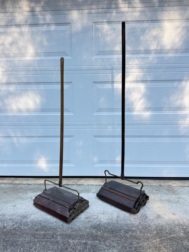 Pair of Antique Grand Rapids Carpet Sweepers – Wood & Cast Iron.