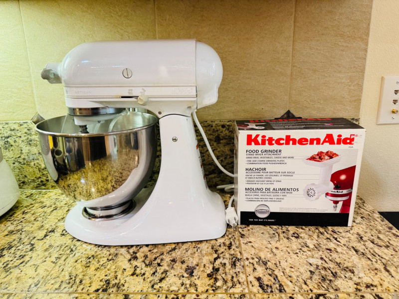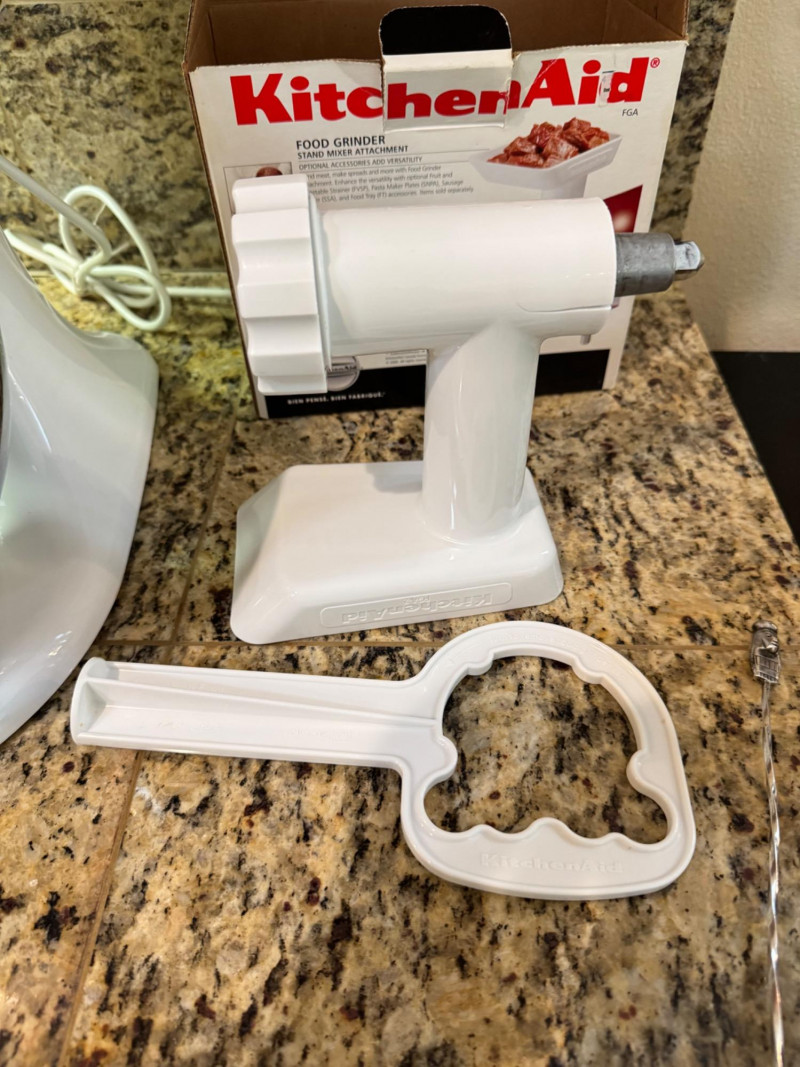 KitchenAid Artisan Stand Mixer w/ Food Grinder Attachment.