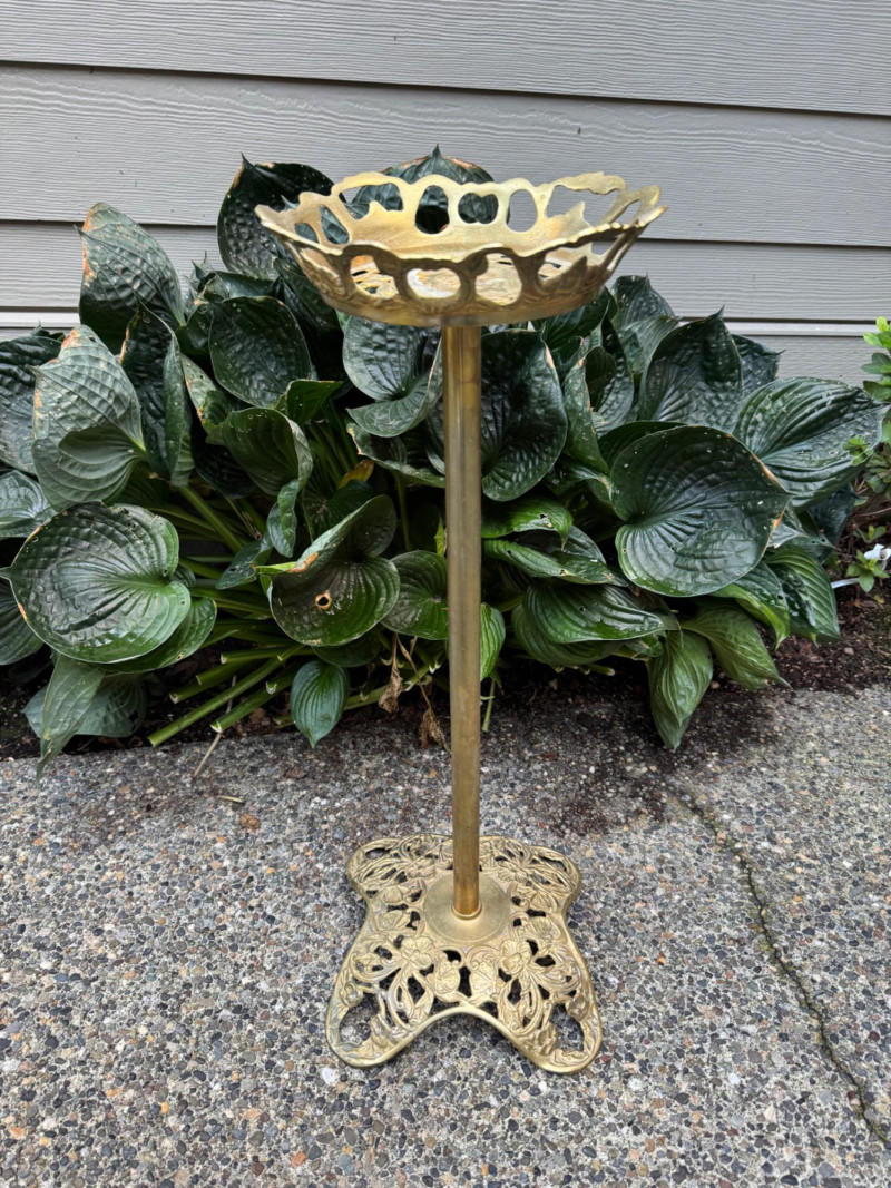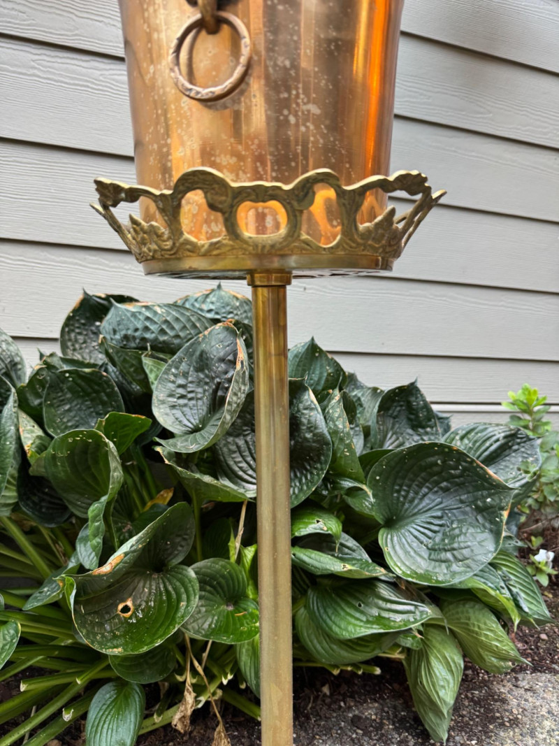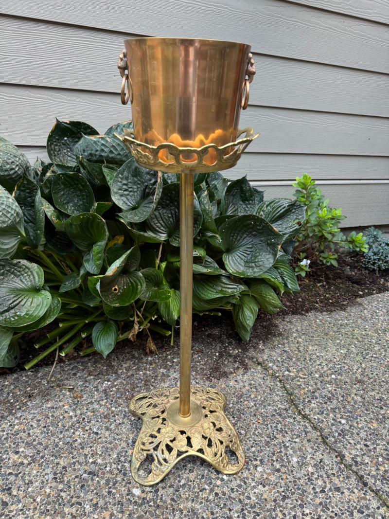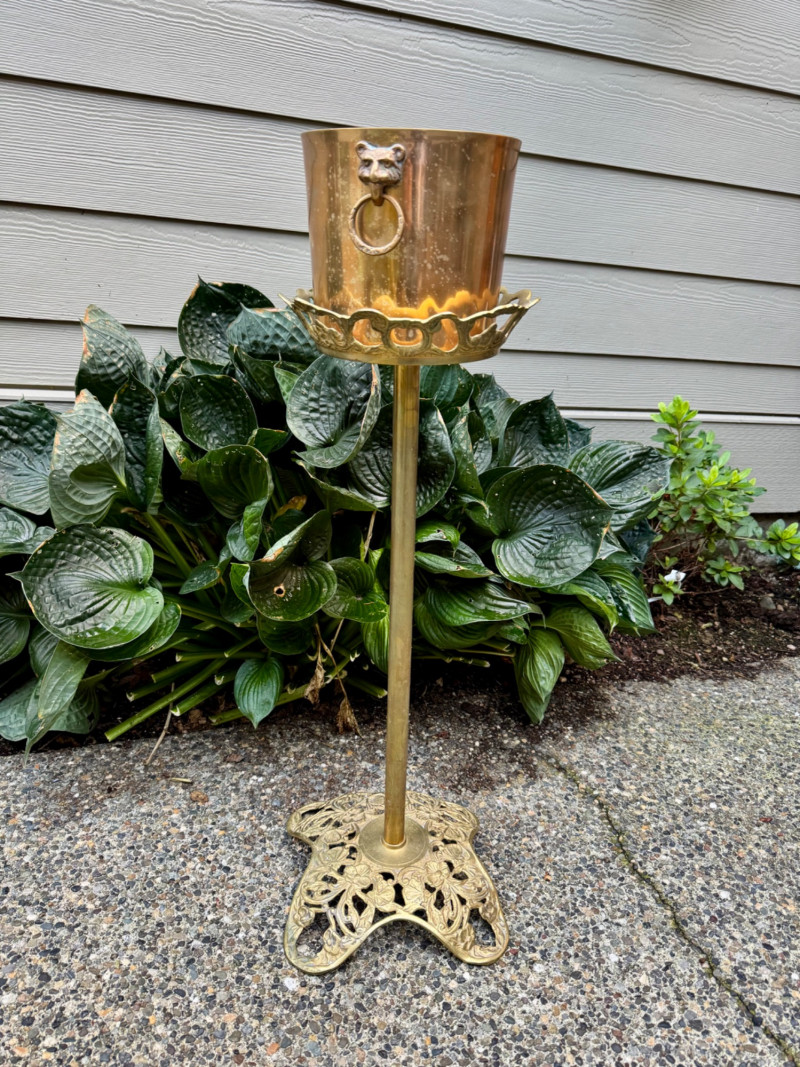 Gold-Tone Metal Plant Stand w/ Removable Lion Head Bucket.