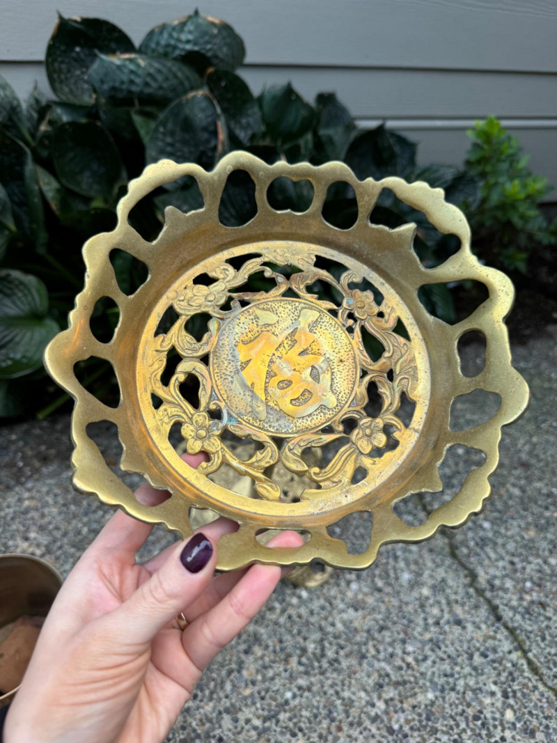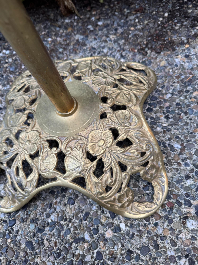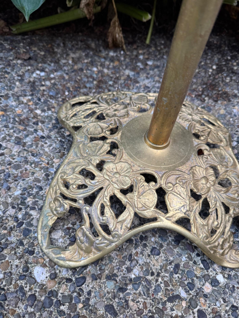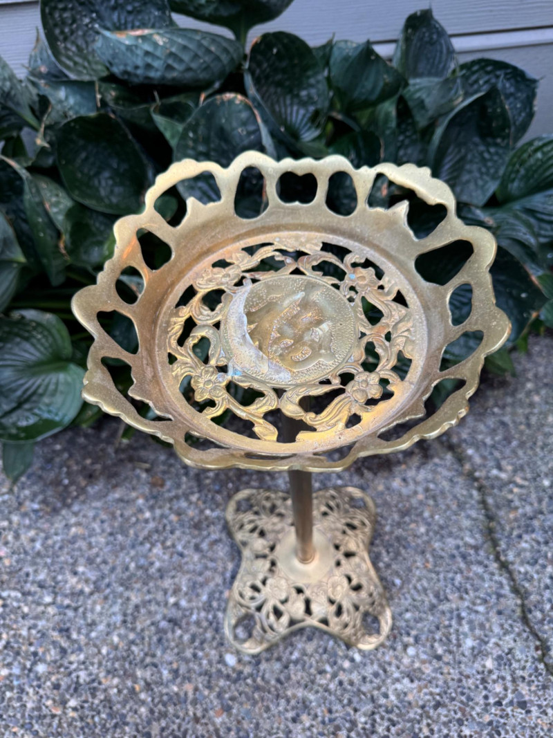 Gold-Tone Metal Plant Stand w/ Removable Lion Head Bucket.