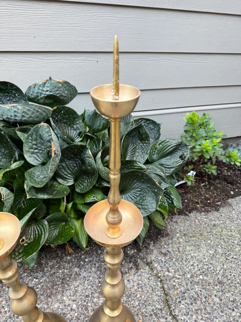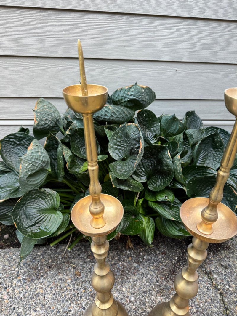 Lot # 13 - Pair of Tall Brass Candlesticks w/ Turned Column Design
