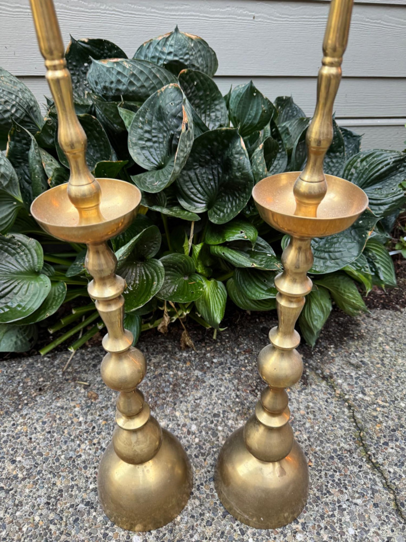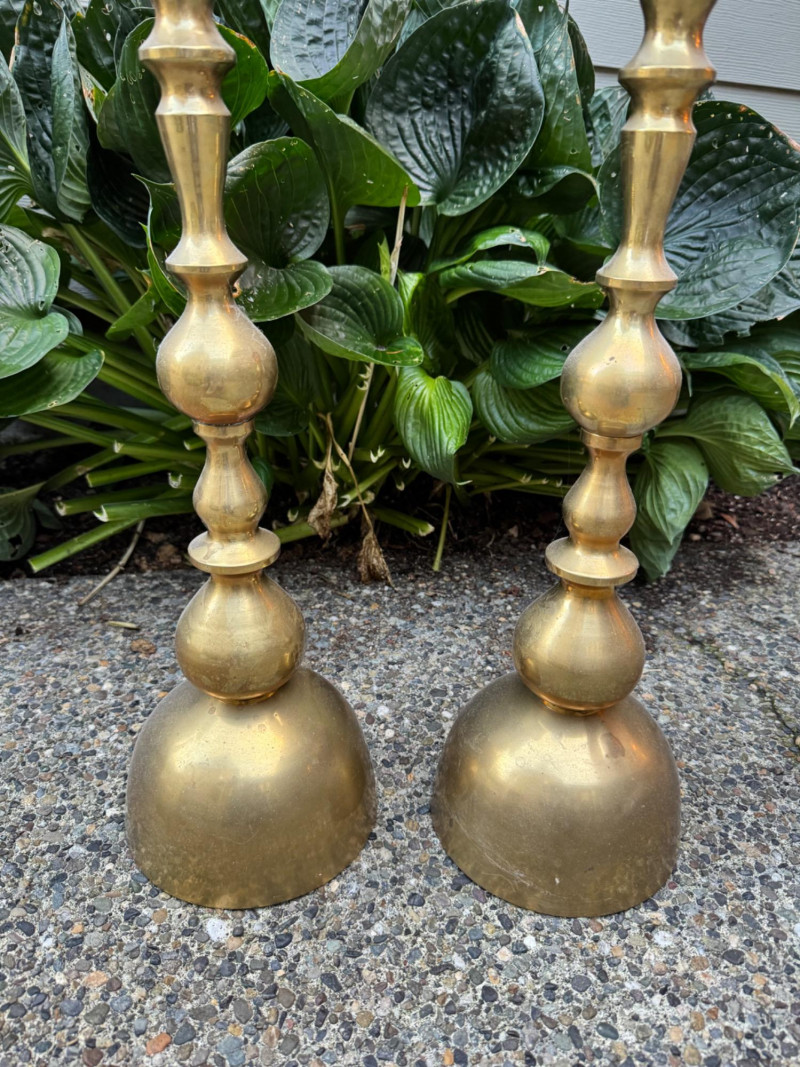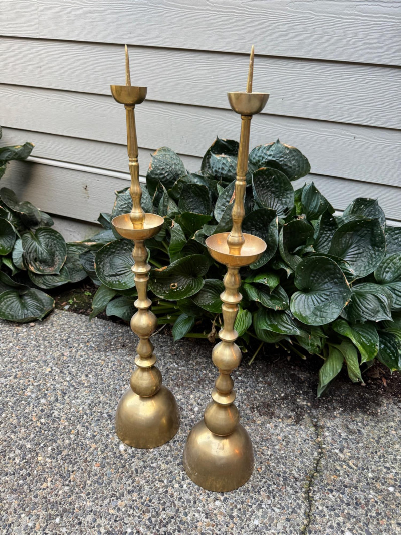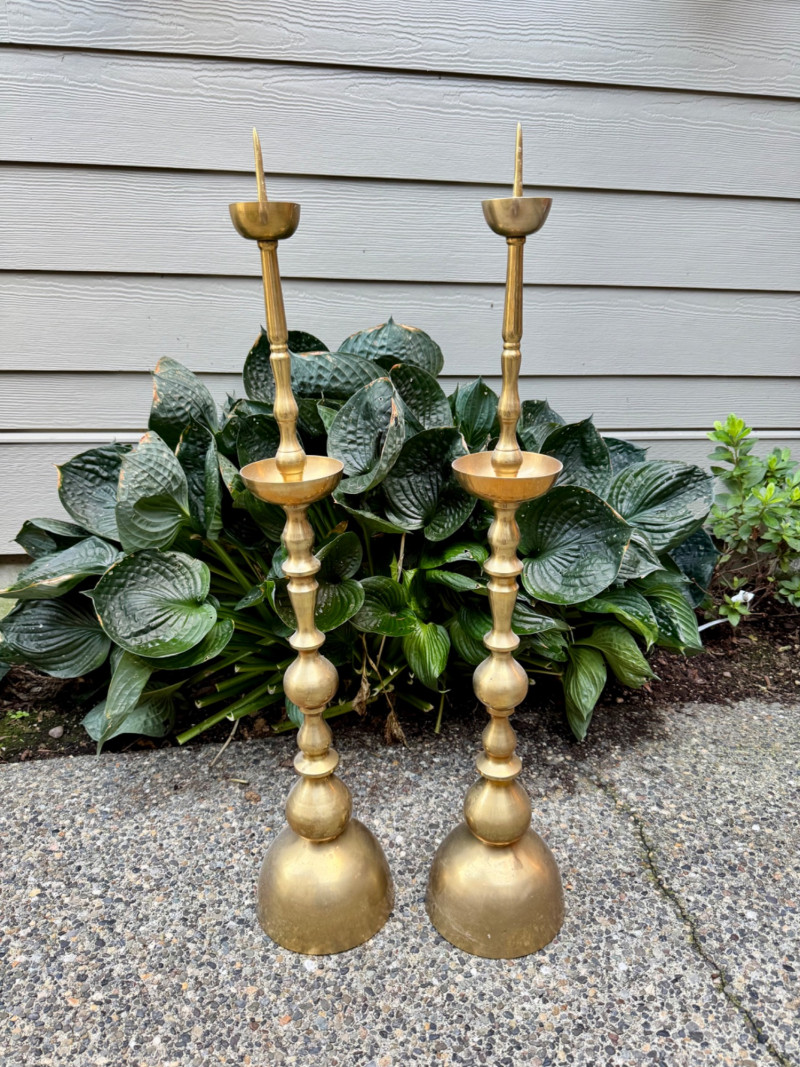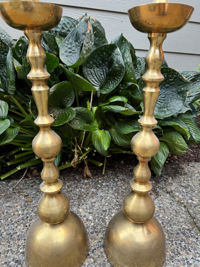 Pair of Tall Brass Candlesticks w/ Turned Column Design.