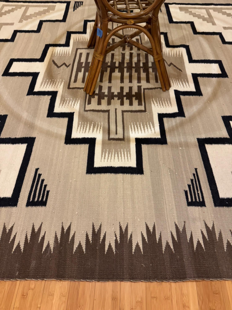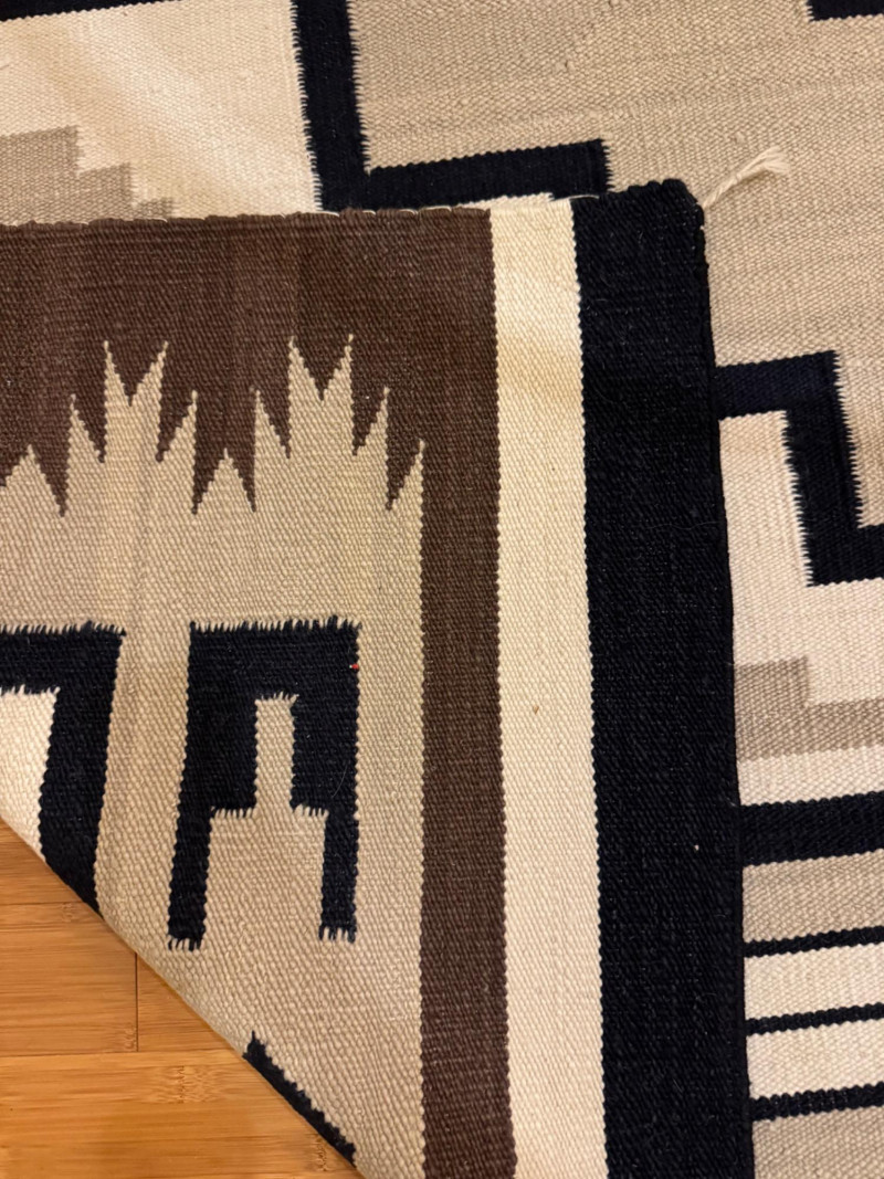 Large Navajo Wool Rug Geometric Design, Neutral Earth Tones.