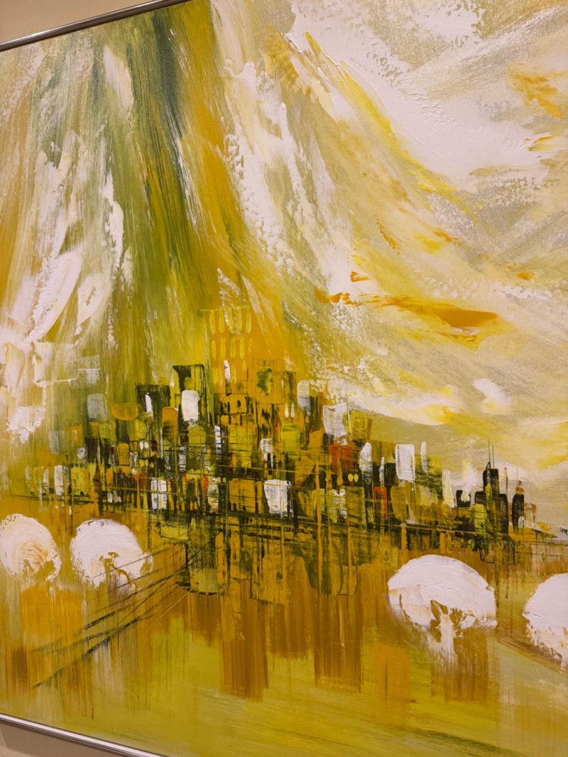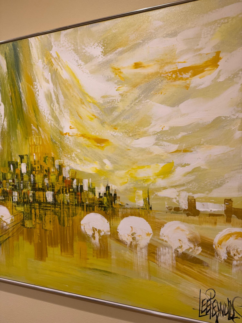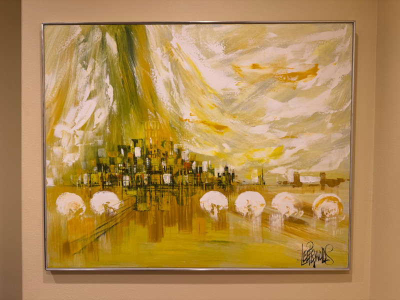 Large Mid-Century Modern Painting by Lee Reynolds - Cityscape.