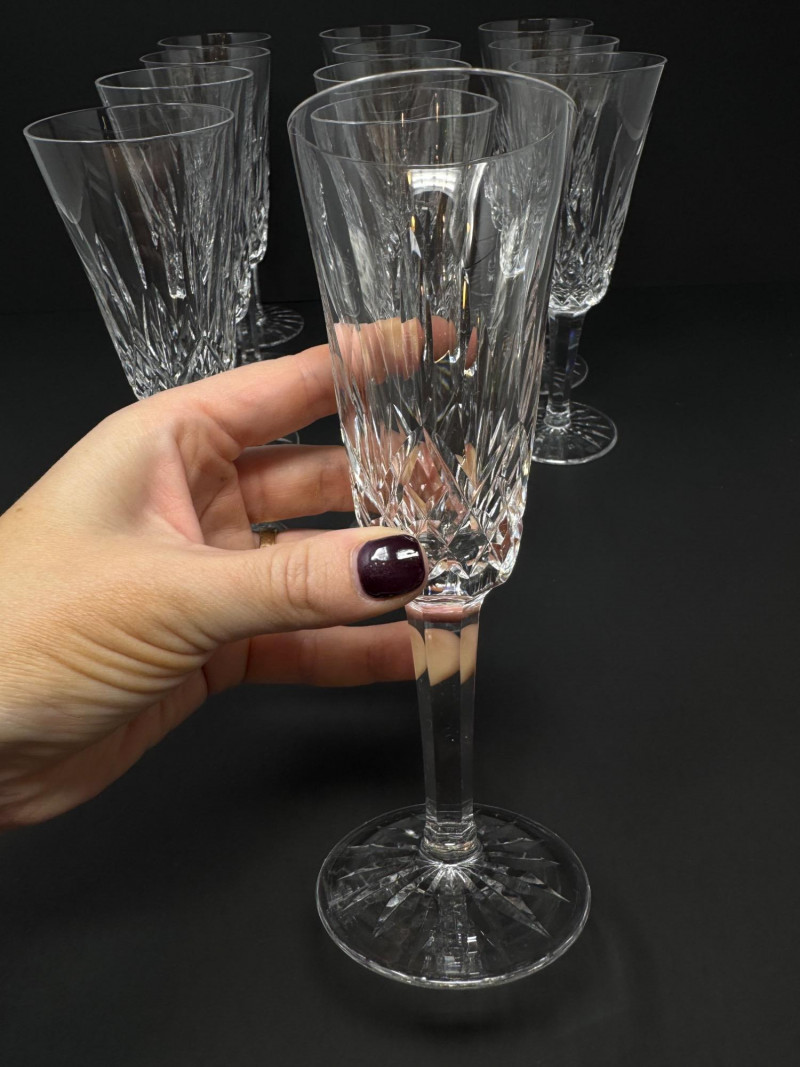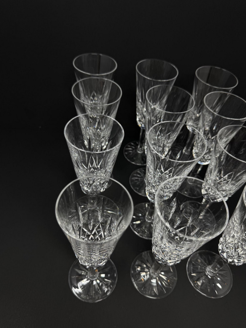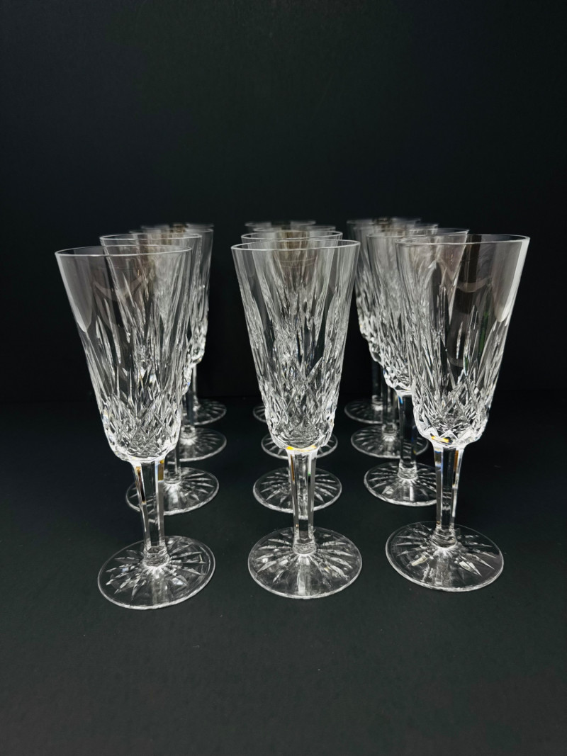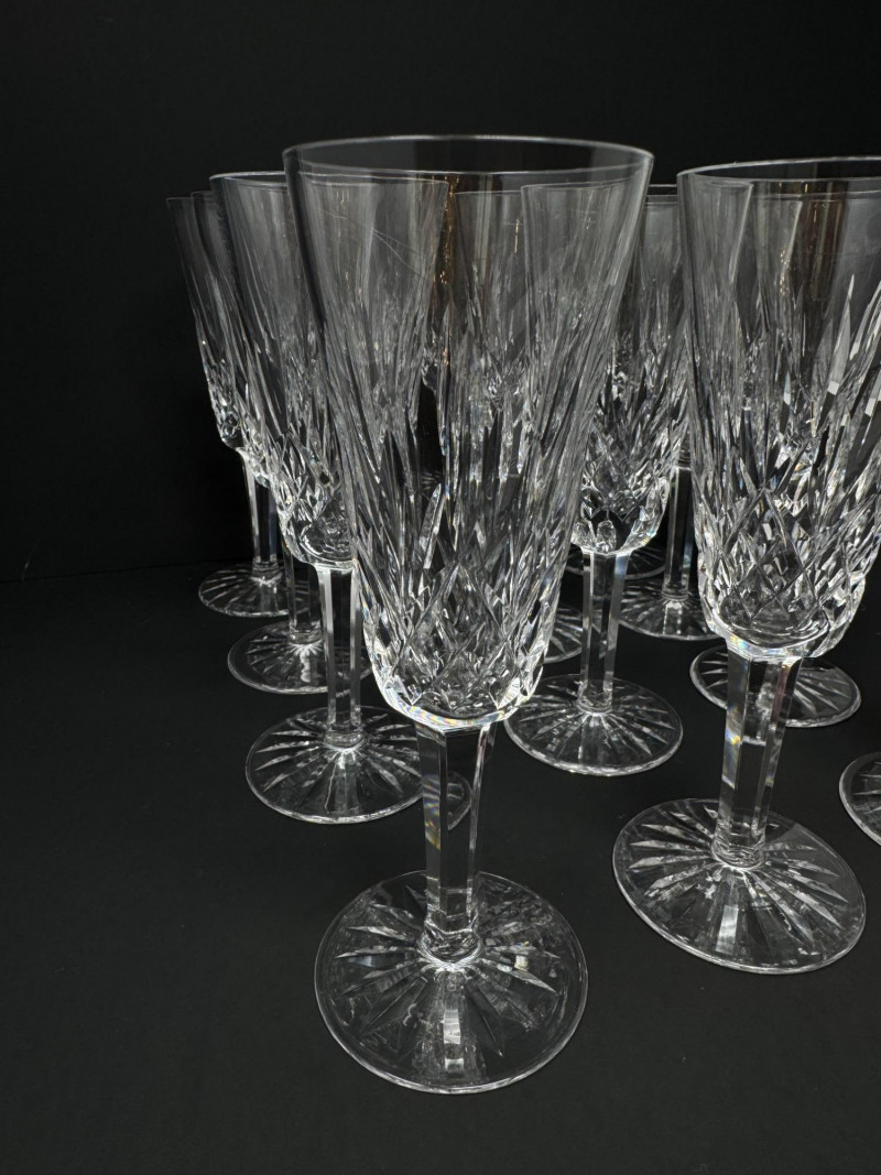 12 Waterford Lismore Crystal Champagne Flutes — Est. $1300+ Set of 12 champagne flutes, approx. 7.5" tall