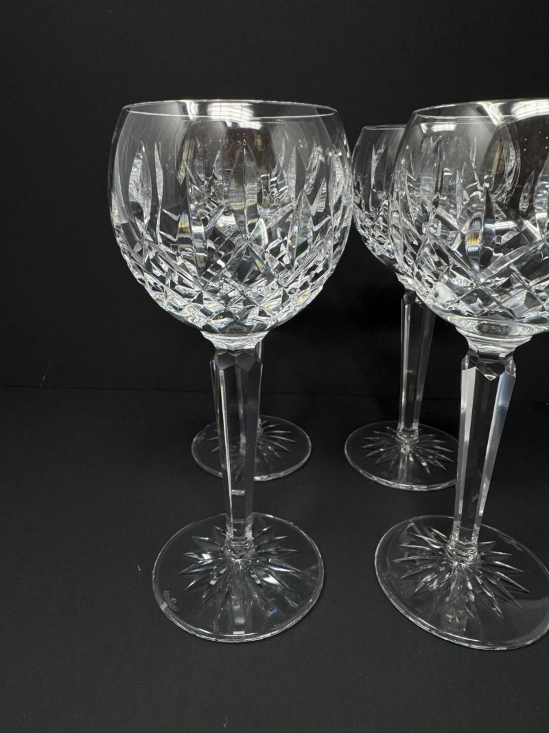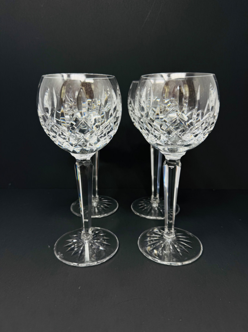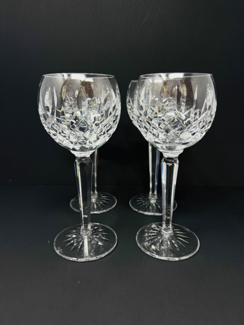 4 Waterford Crystal Hock Wine Glasses – 7.5" Tall, Est. $400+