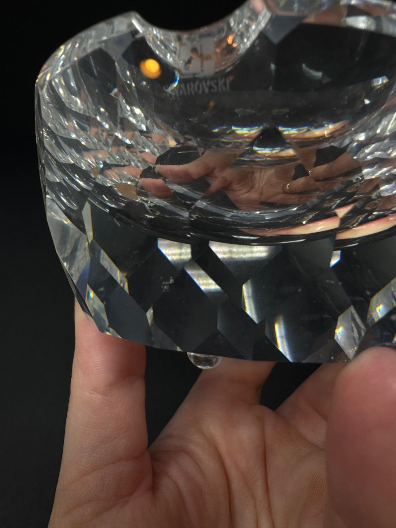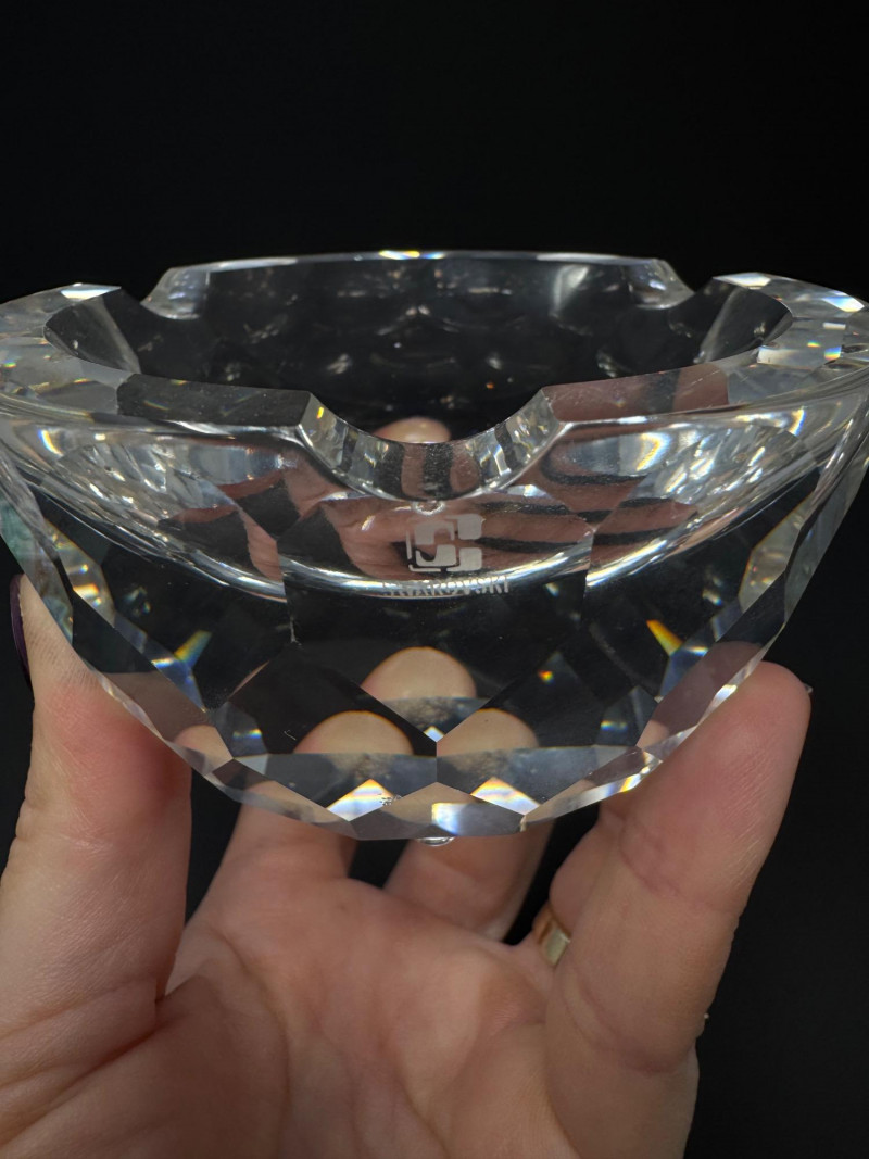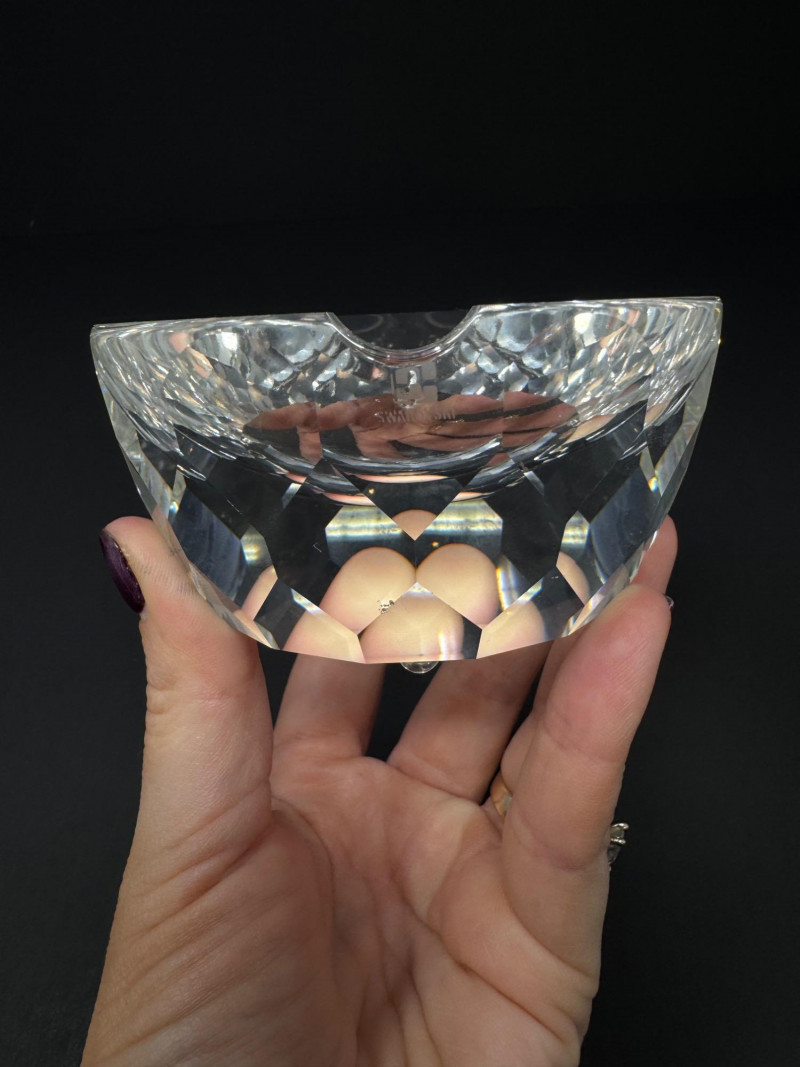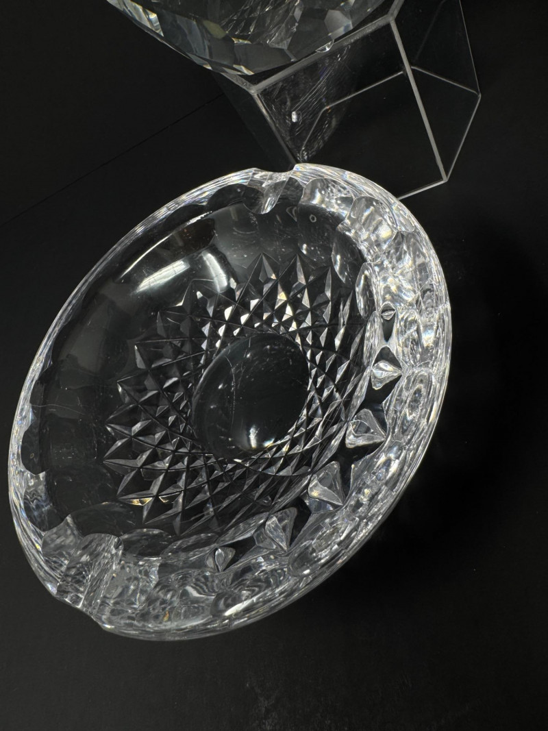 Swarovski & Waterford Crystal Ashtrays – 2-Piece Lot. Includes: (1) Swarovski faceted crystal ashtray – one small blemish noted (1) Waterford “Colleen” short stem cut crystal ashtray