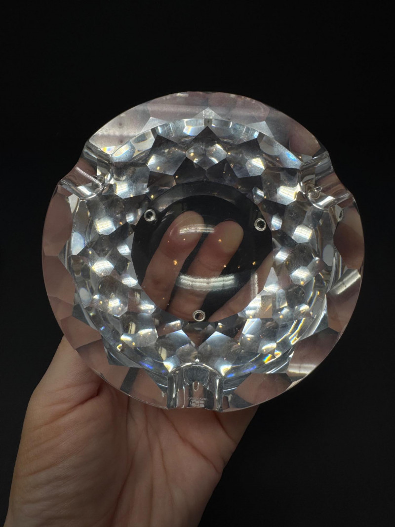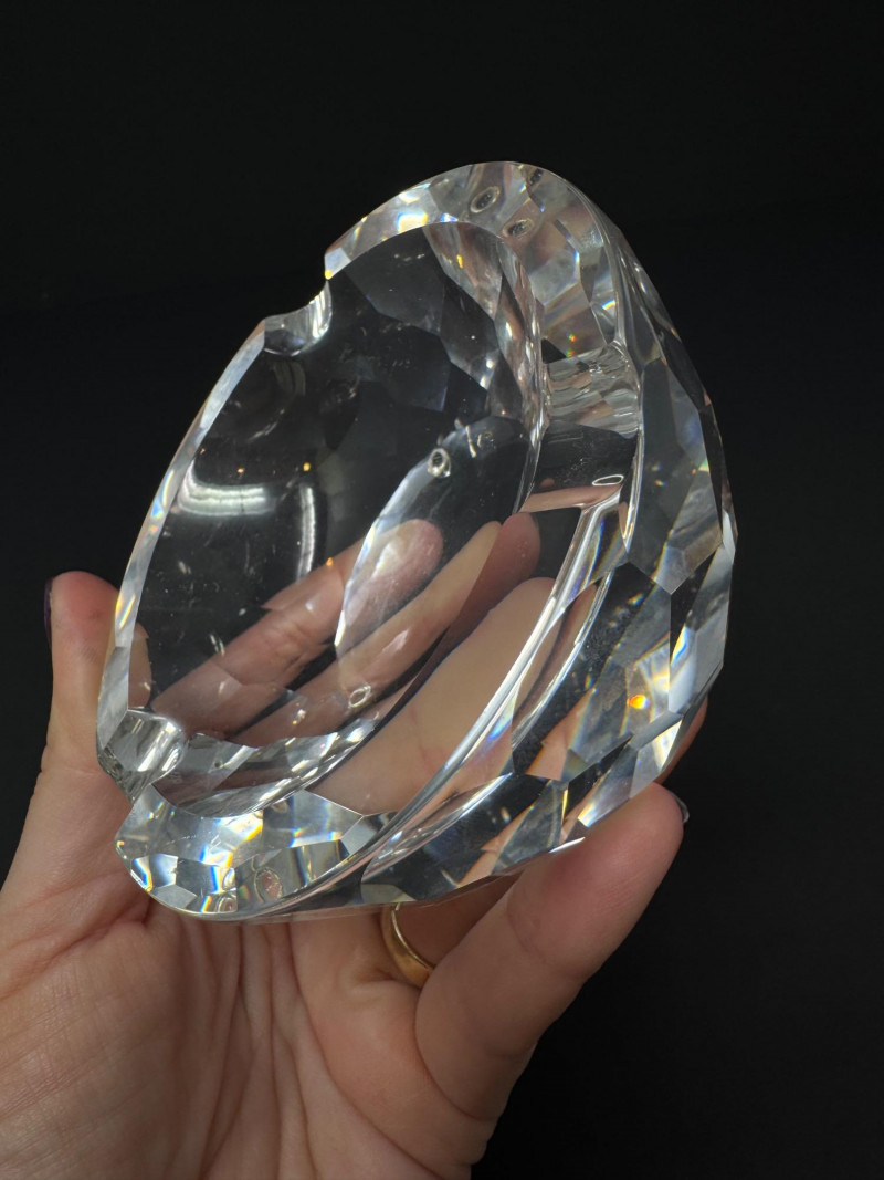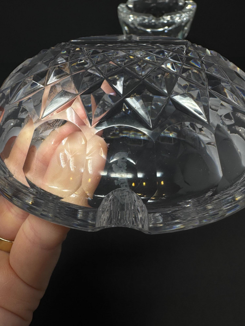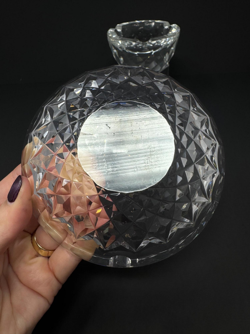 Swarovski & Waterford Crystal Ashtrays – 2-Piece Lot. Includes: (1) Swarovski faceted crystal ashtray – one small blemish noted (1) Waterford “Colleen” short stem cut crystal ashtray