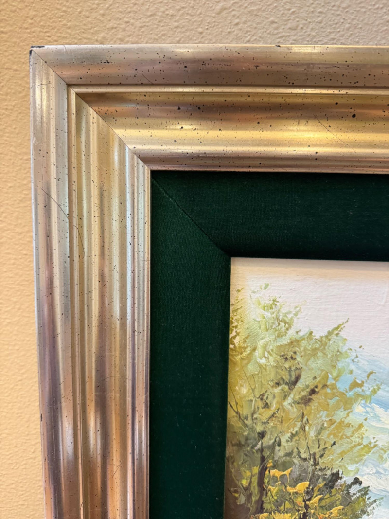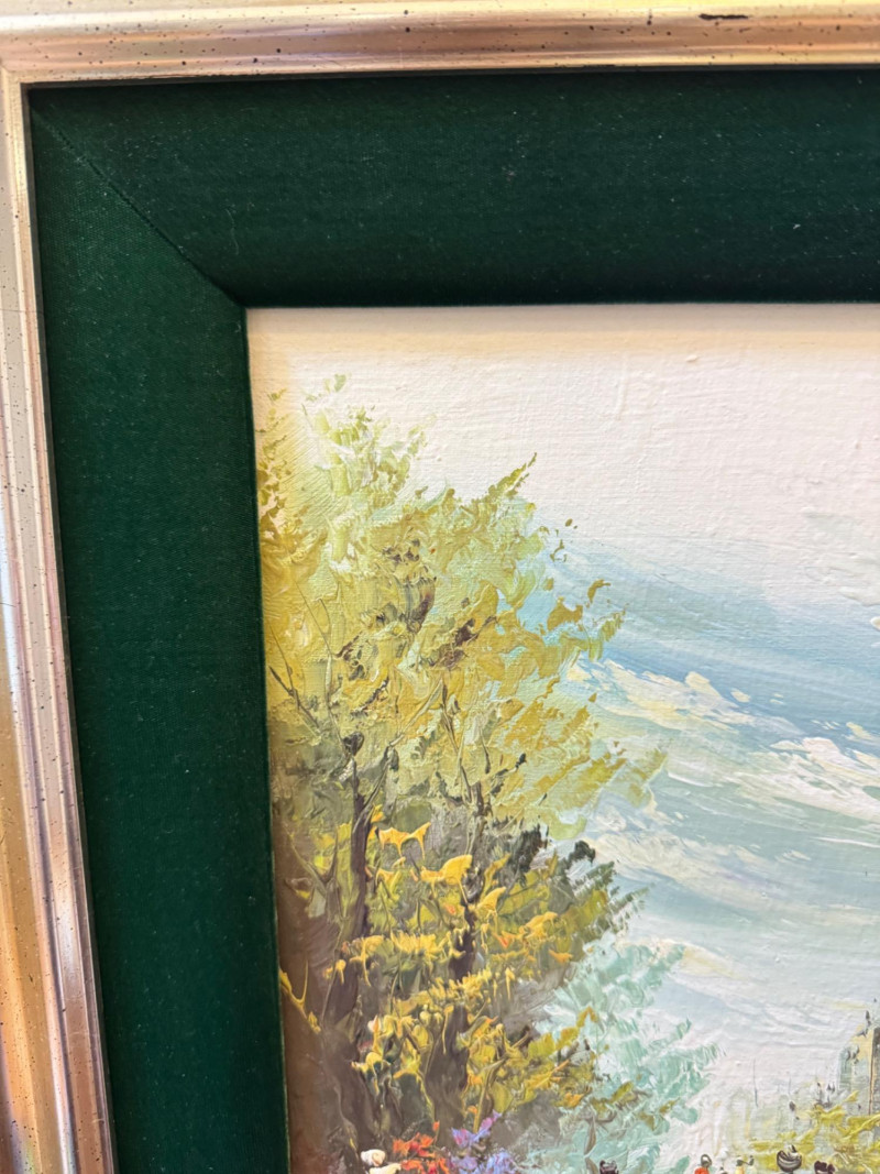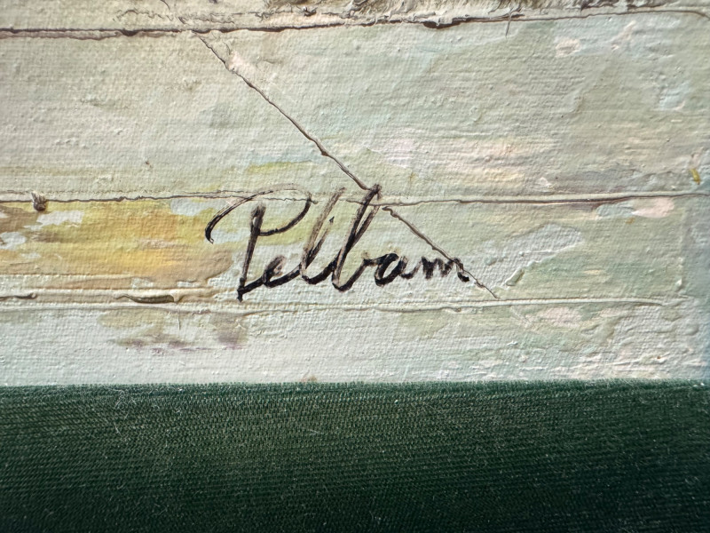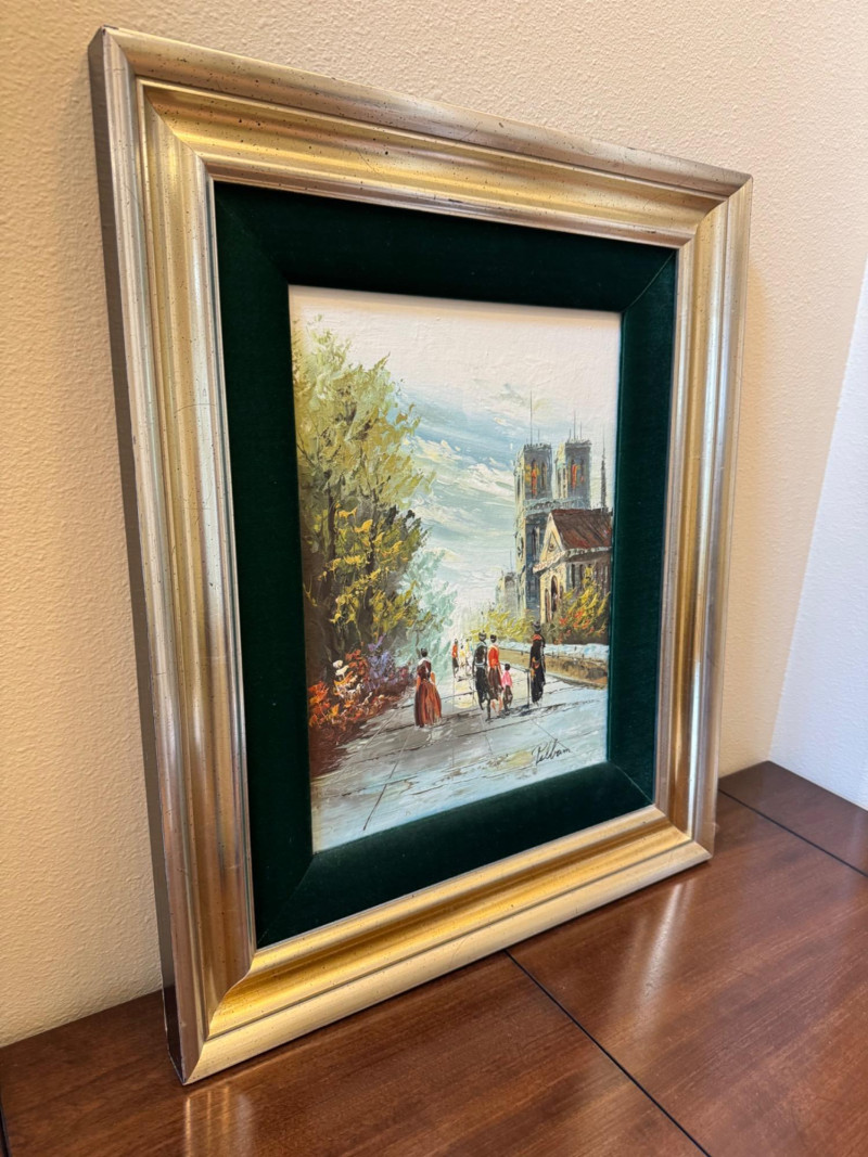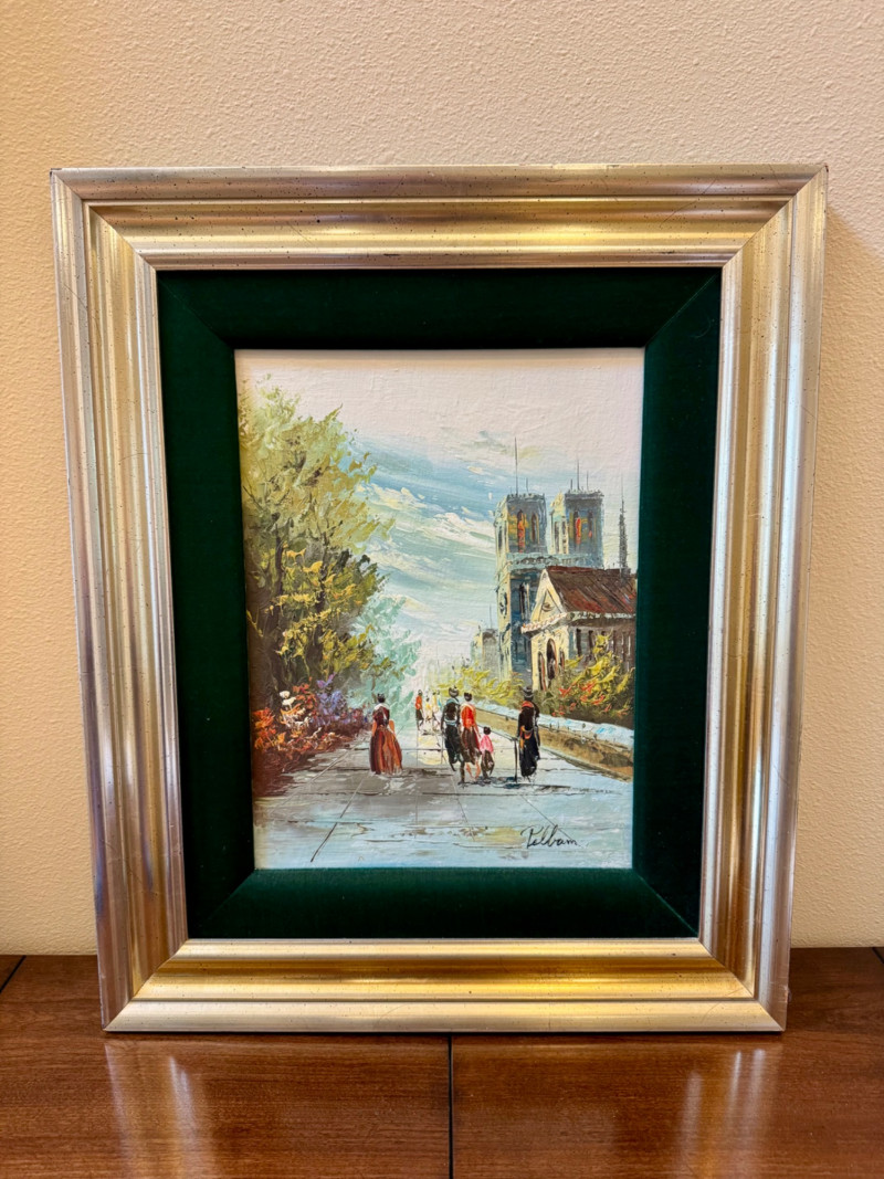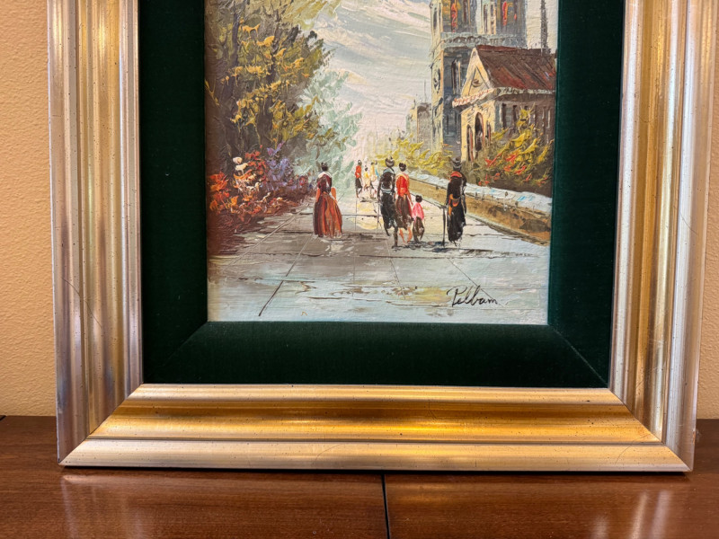 Pelbam Signed Oil Painting – Paris Street Scene, Green Velvet Frame.