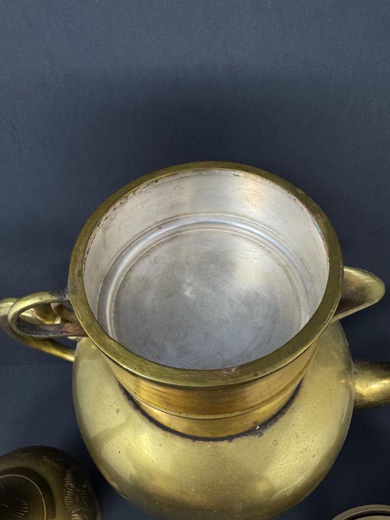 Lot # 55 - Saudi Arabia Brass Teapot, Rose Water Sprinkler & Mortars
