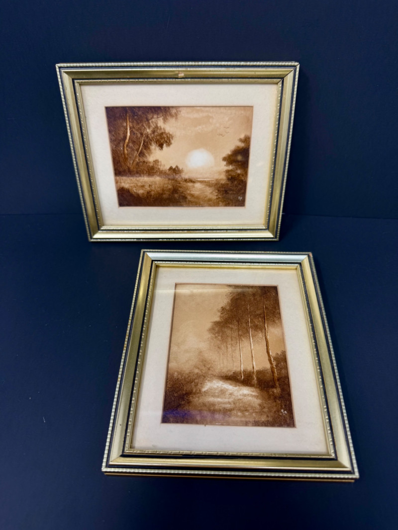 Pair of Sepia Landscape Paintings – Robert J. Hall, London.