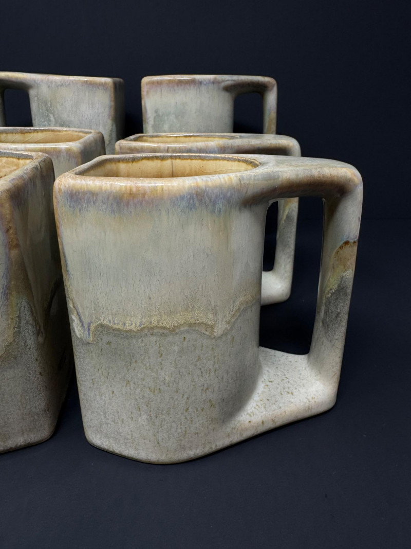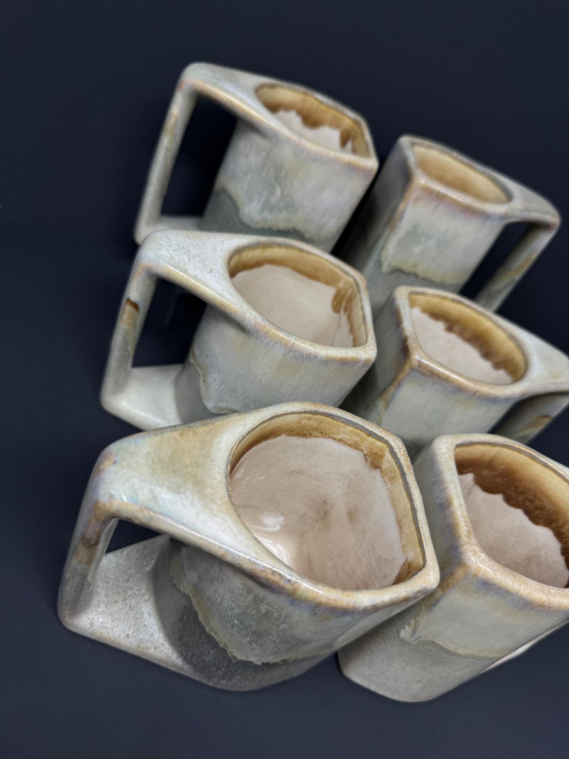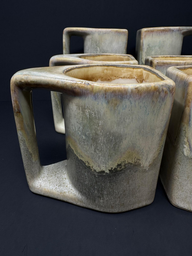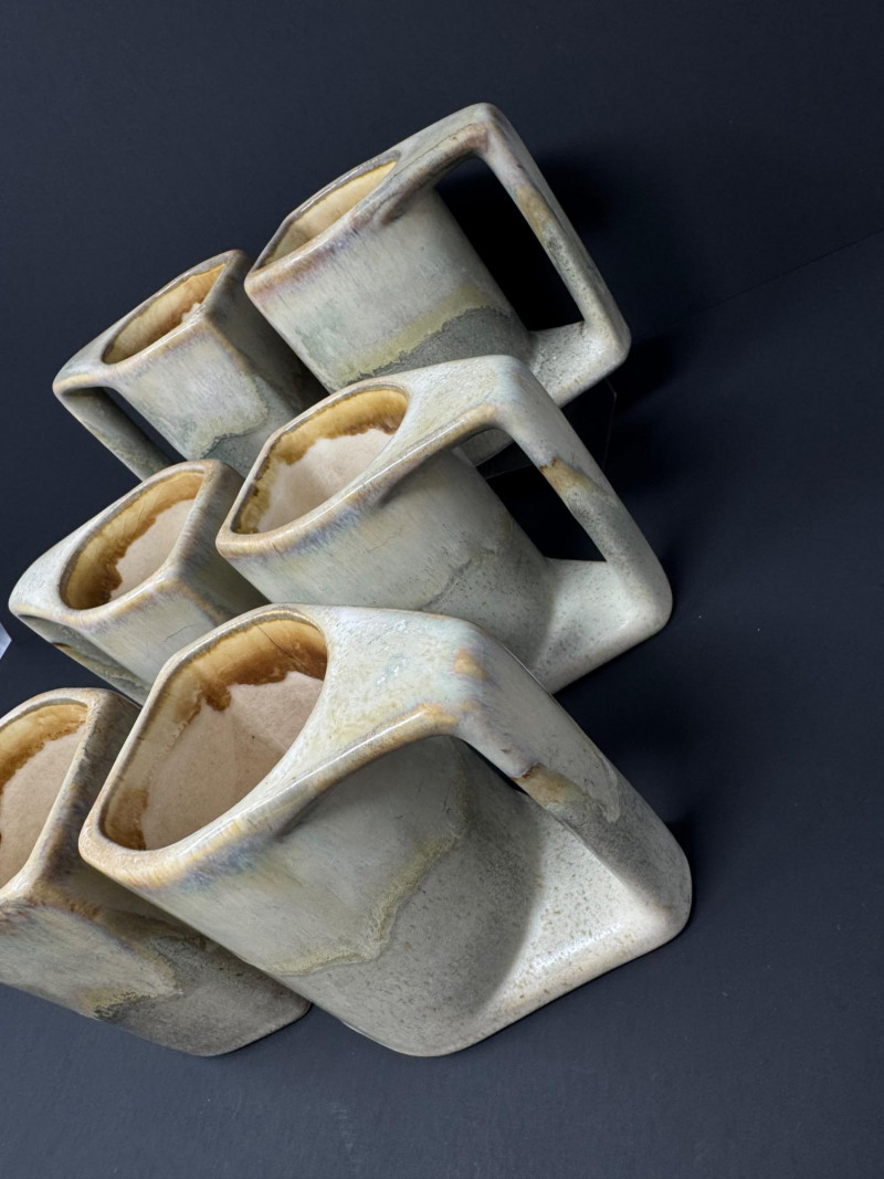 Set of 6 Squared Shape Stoneware Mugs – Rodolfo Padilla Style.