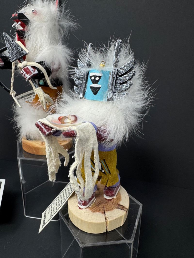 Lot # 64 - Set of 3 Navajo Kachina Dolls – Wolf, Crow Mother & White Cloud
