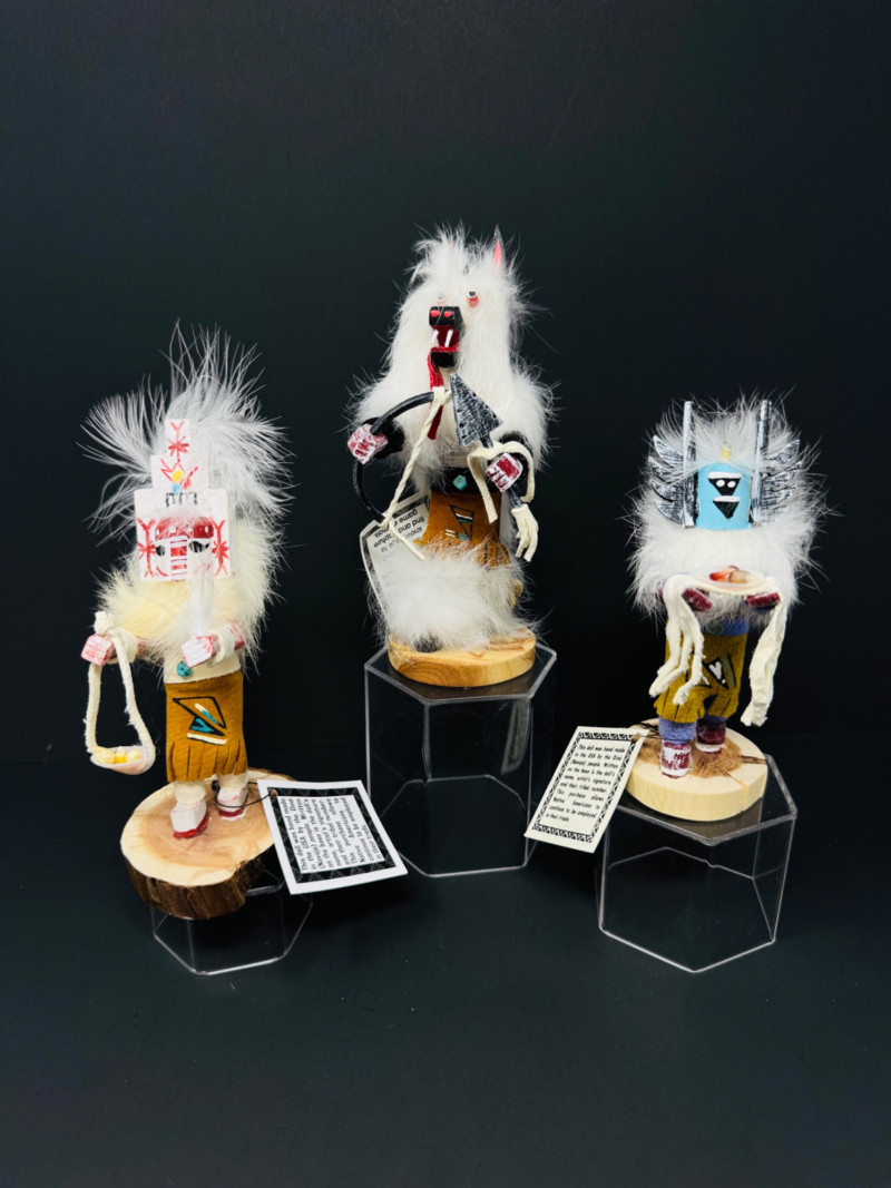 Set of 3 Navajo Kachina Dolls – Wolf, Crow Mother & White Cloud.