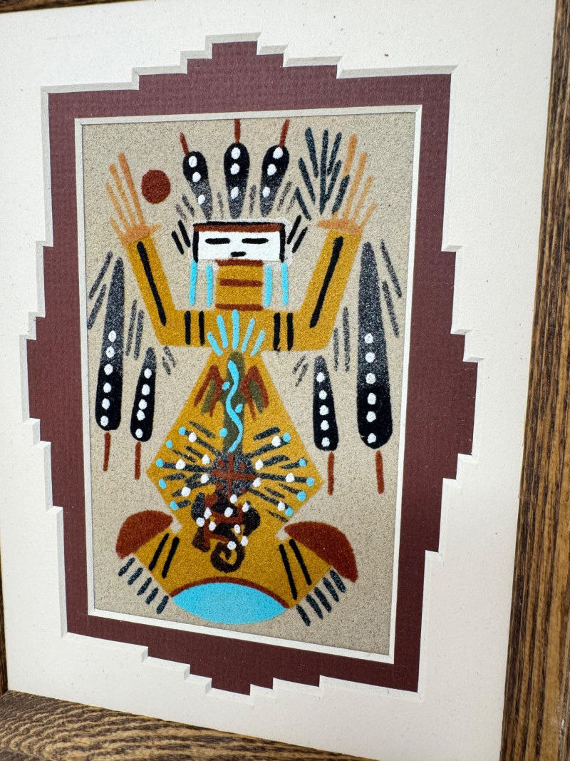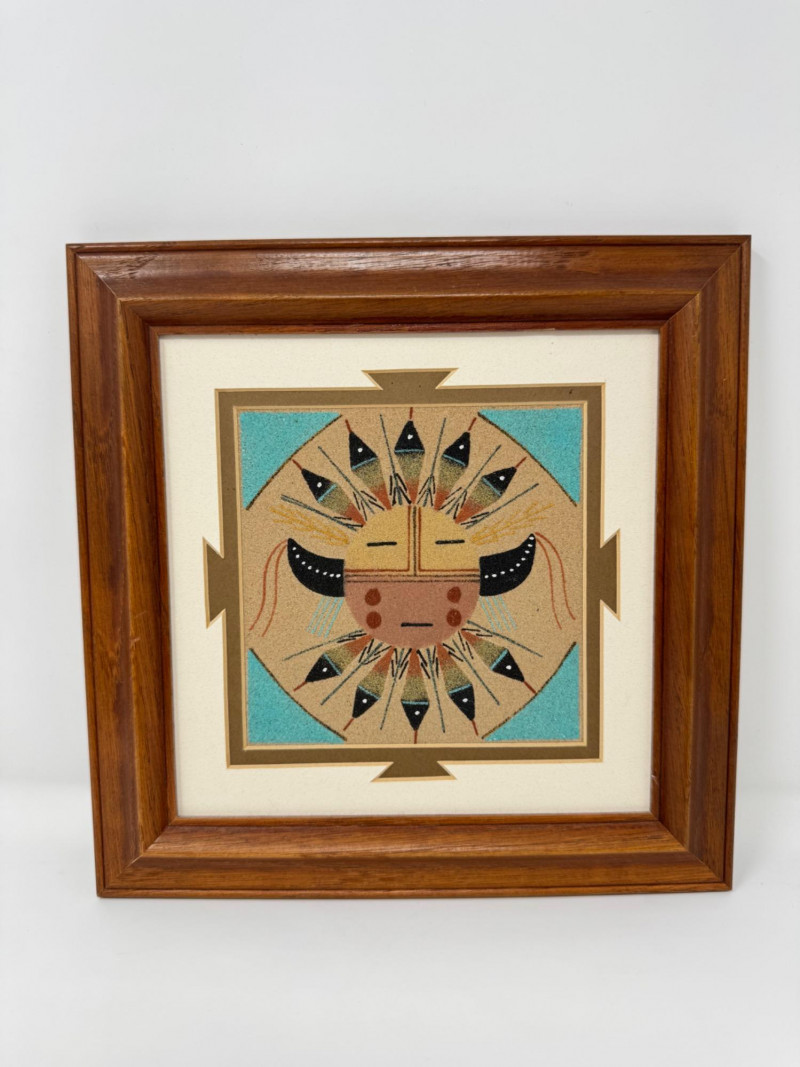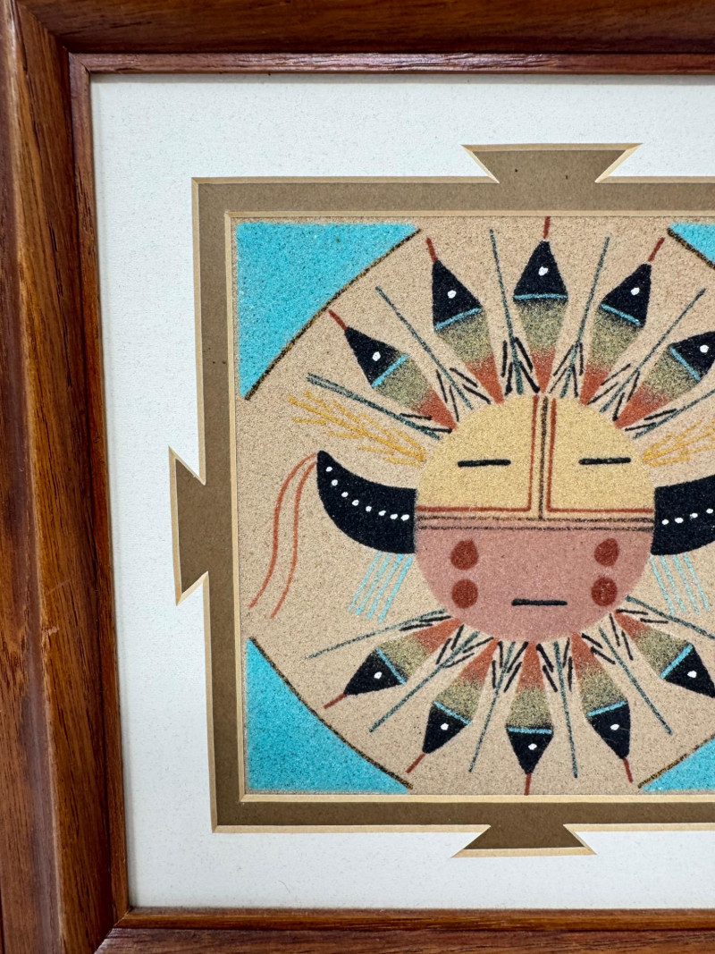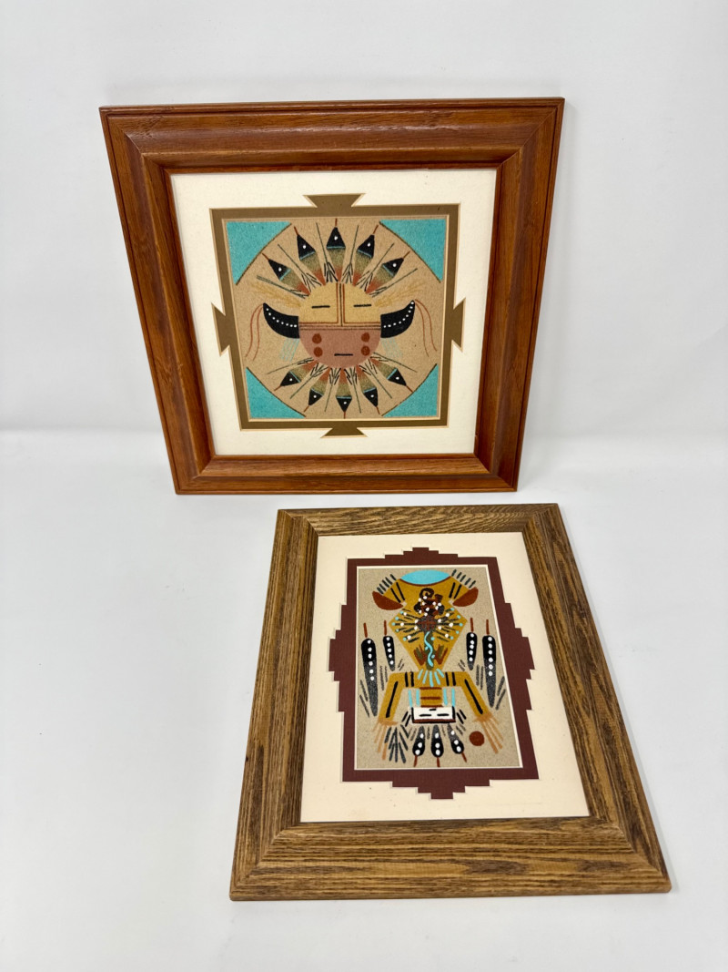 Pair of Navajo Sand Paintings – Father Sky & Mother Earth + Sunface.