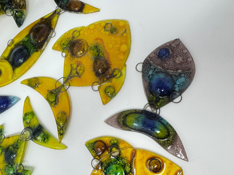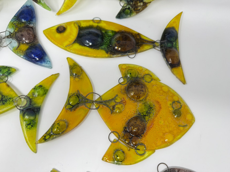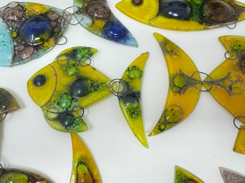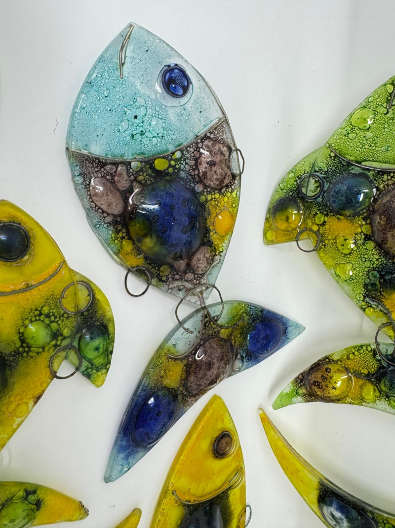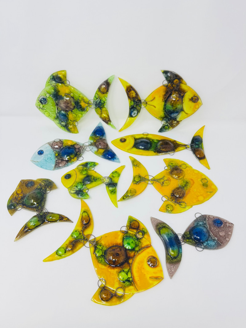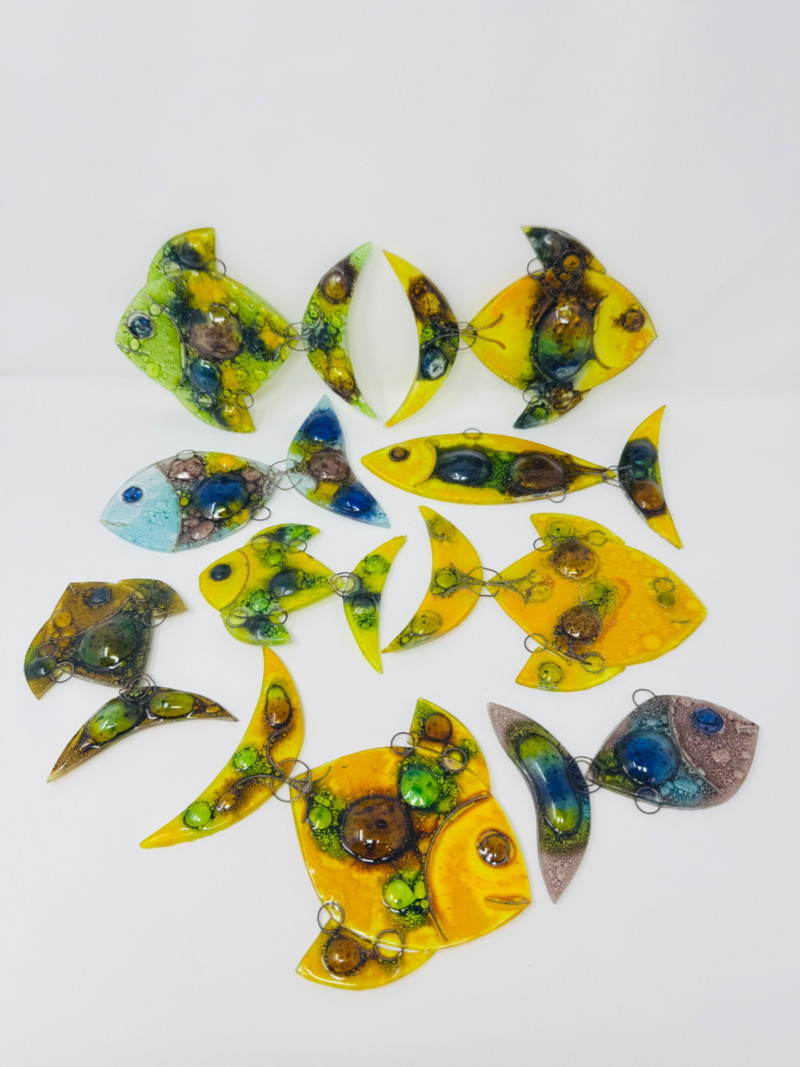 Set of 9 Murano-Style Glass Fish Art Sculptures.