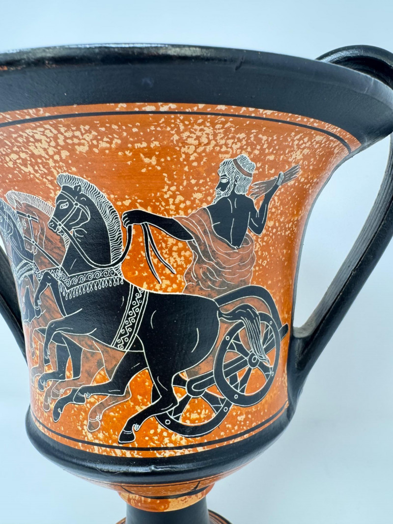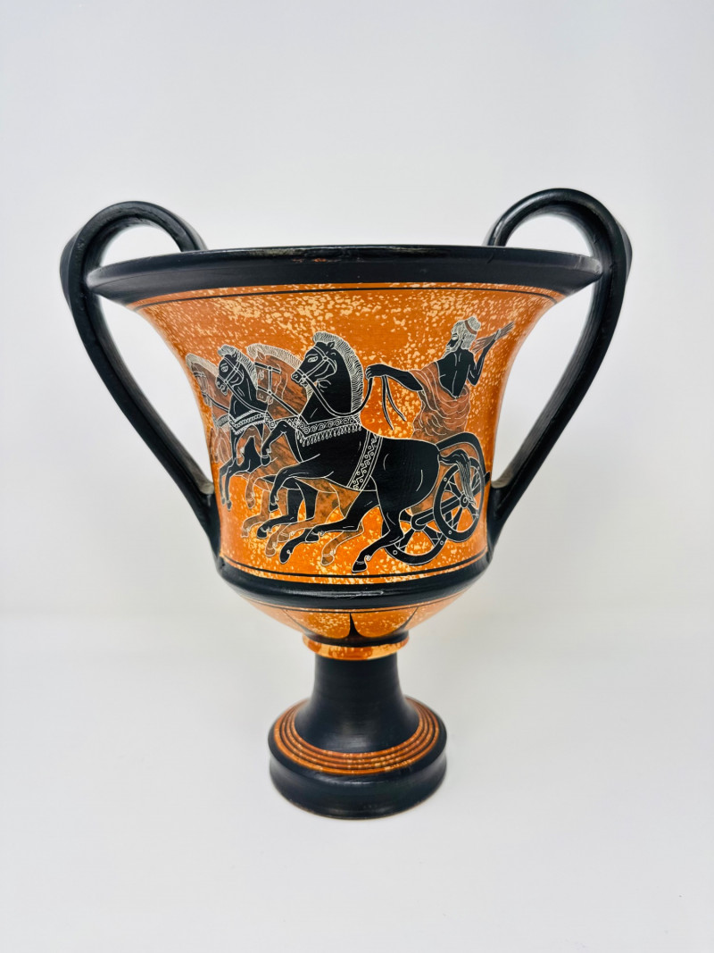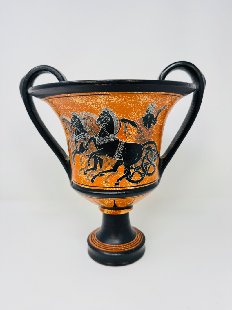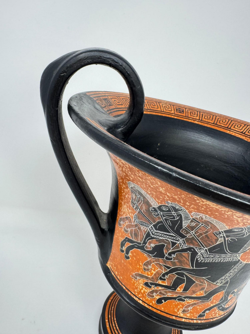 Greek Revival Krater Vase #279 – Hand Painted Chariot Scene, Greece.