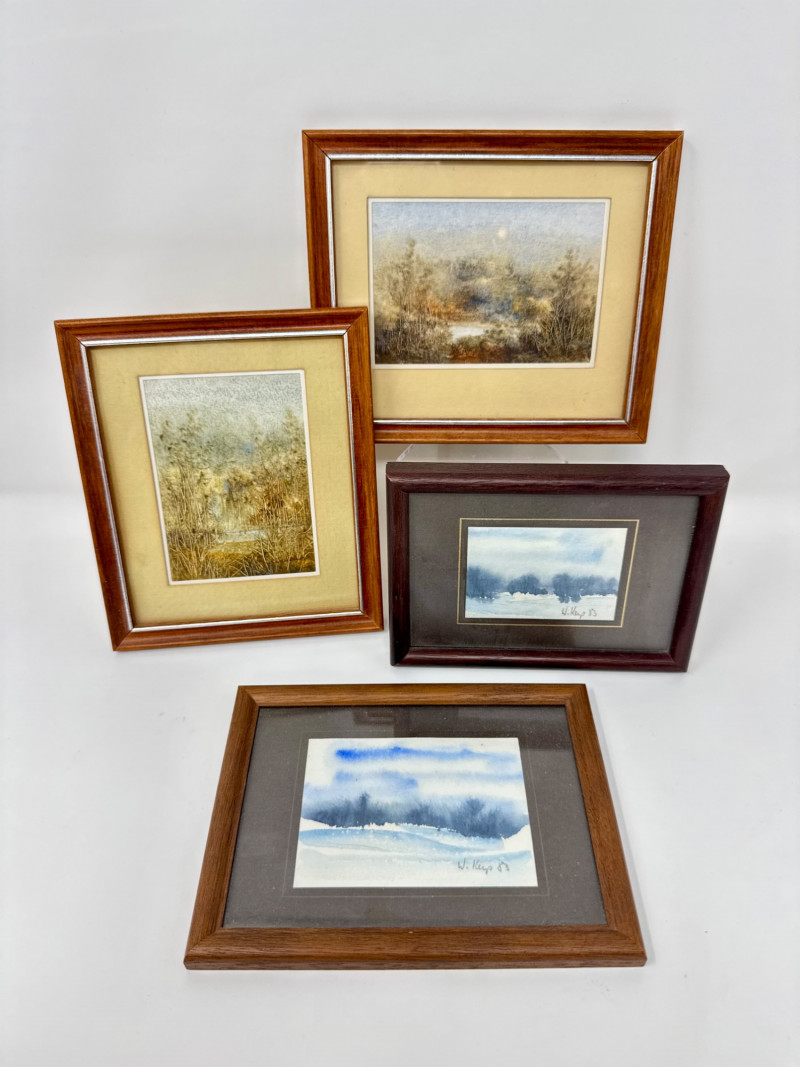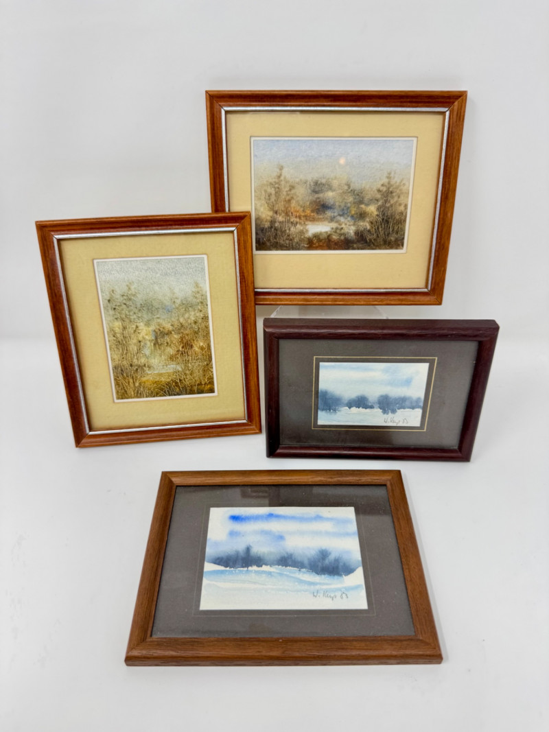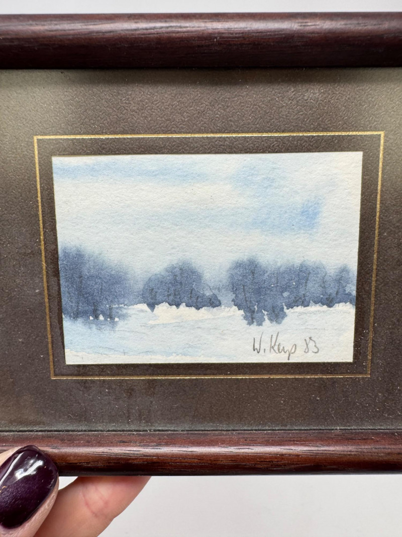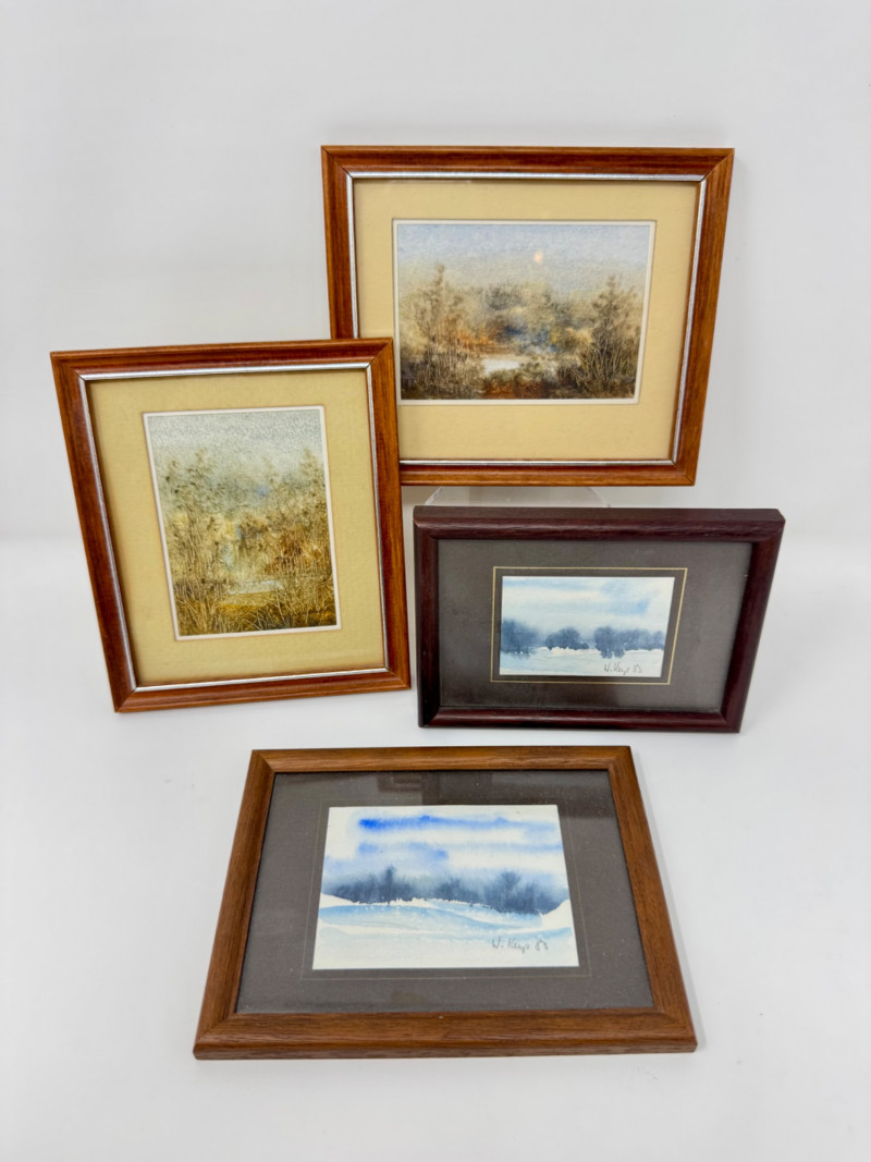 4 Framed Watercolor Landscapes – 2 Signed by W. Kerp, Miniature Art.