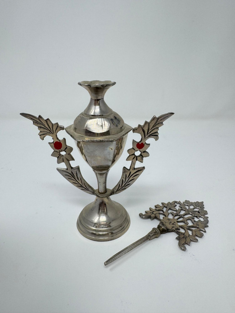 Arabic Surma Dani Kohl Container – Silver Tone Floral Design.