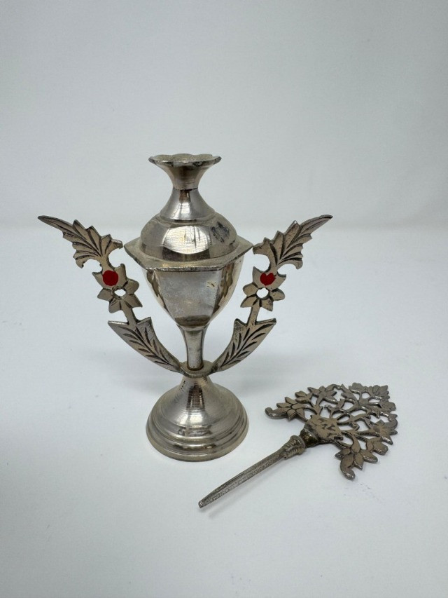 Lot # 75 - Arabic Surma Dani Kohl Container – Silver Tone Floral Design