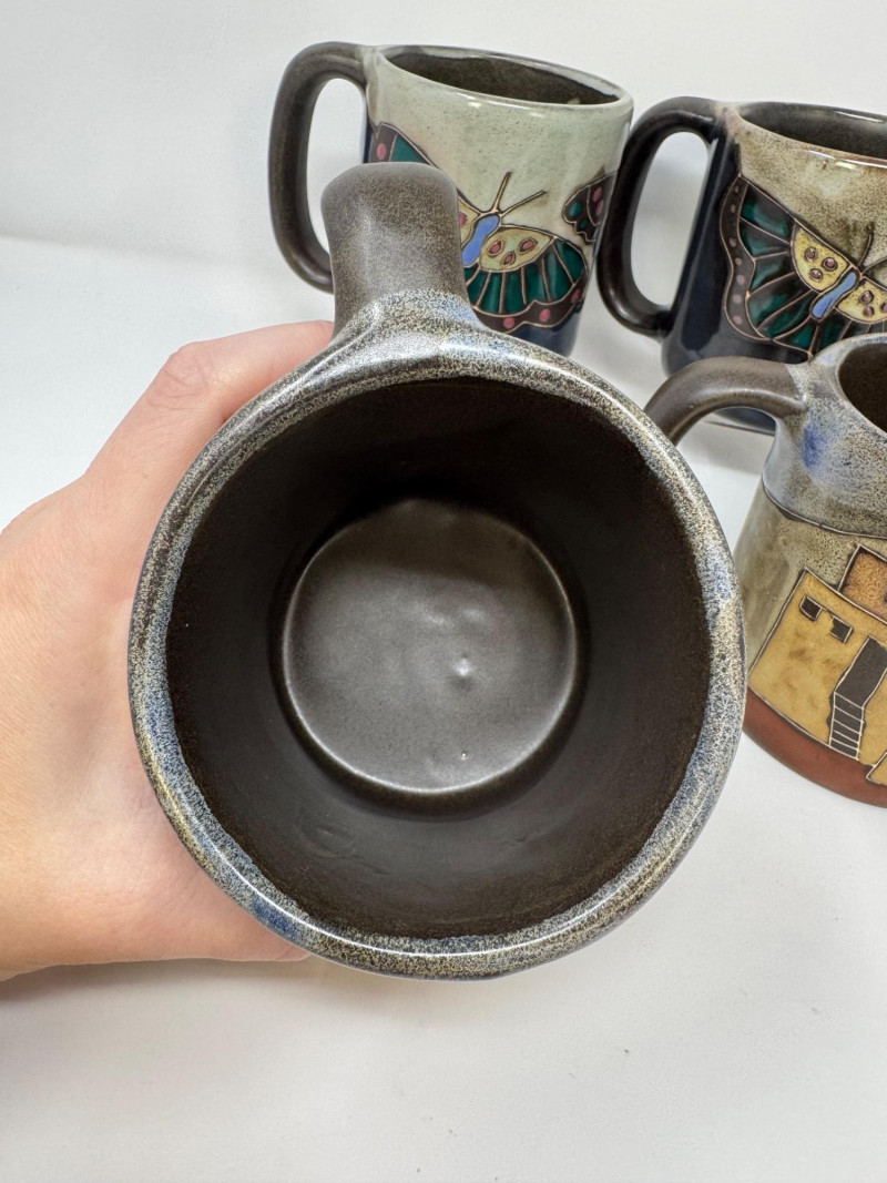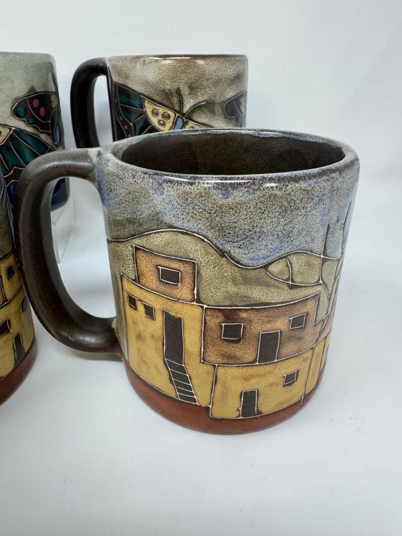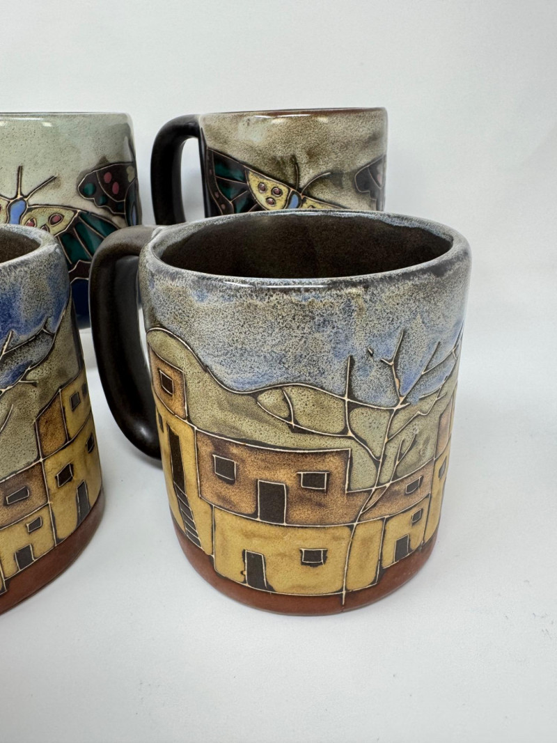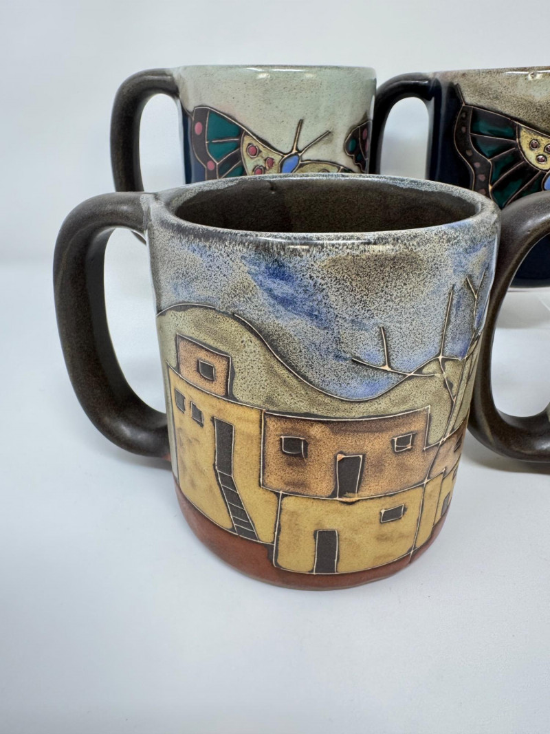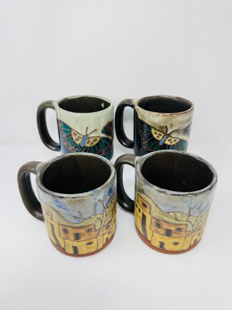 Lot # 78 - 4 Large Mara Stoneware Mugs – Butterfly & Pueblo Designs, Mexico