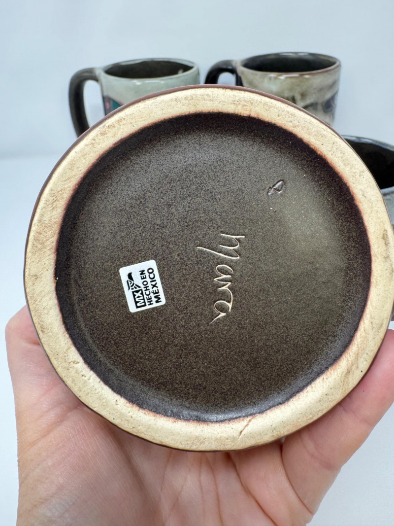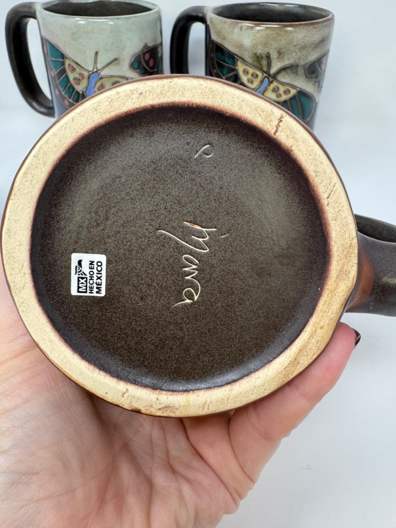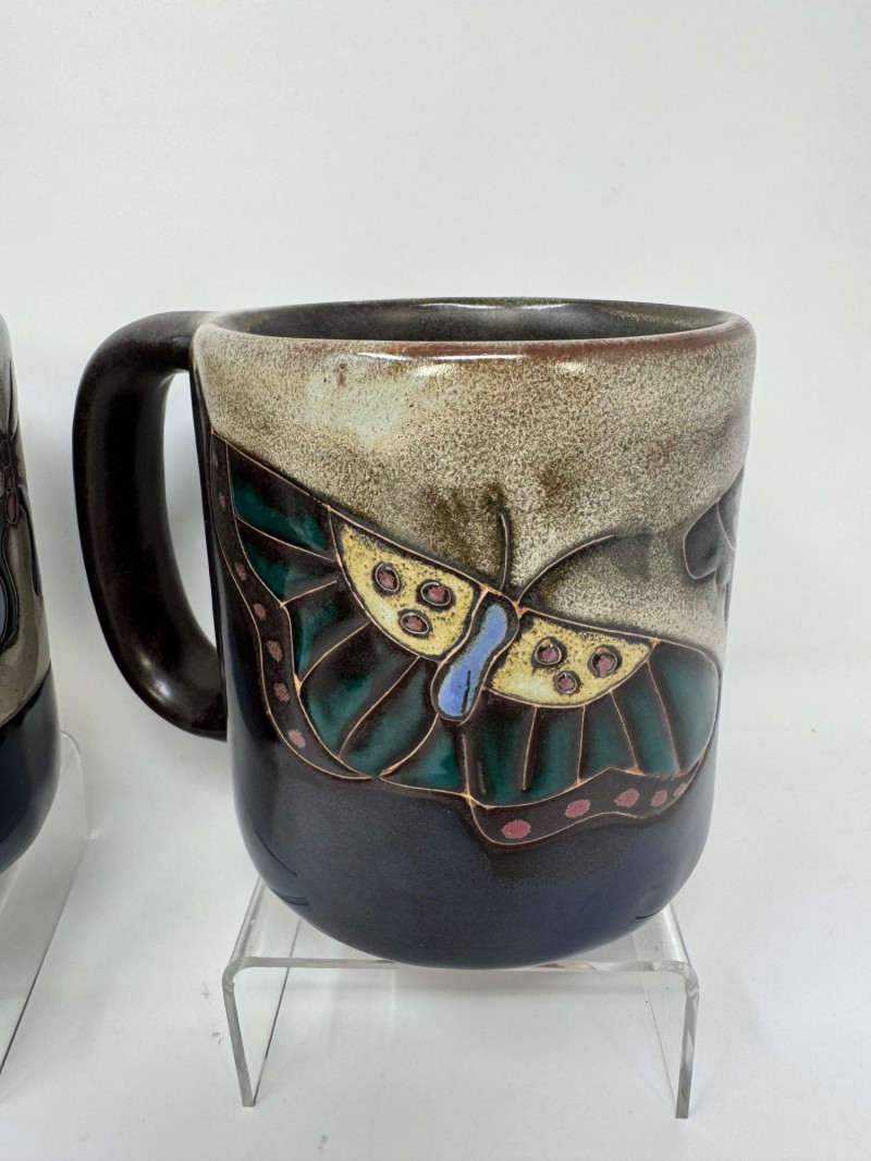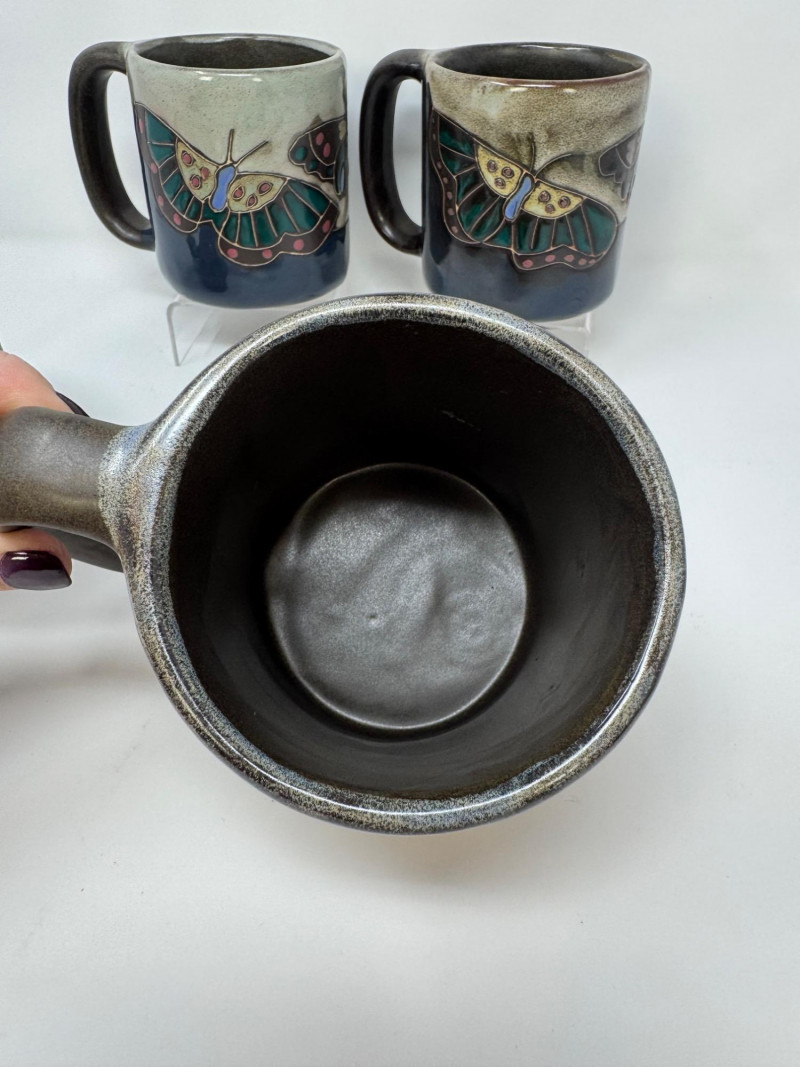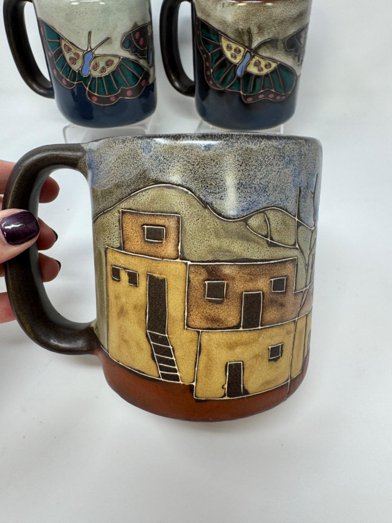 Lot # 78 - 4 Large Mara Stoneware Mugs – Butterfly & Pueblo Designs, Mexico
