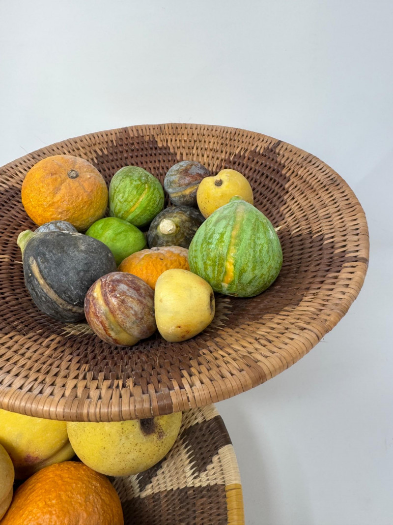 Lot # 79 - 2 Woven Baskets Filled w/ Decorative Stone Fruit