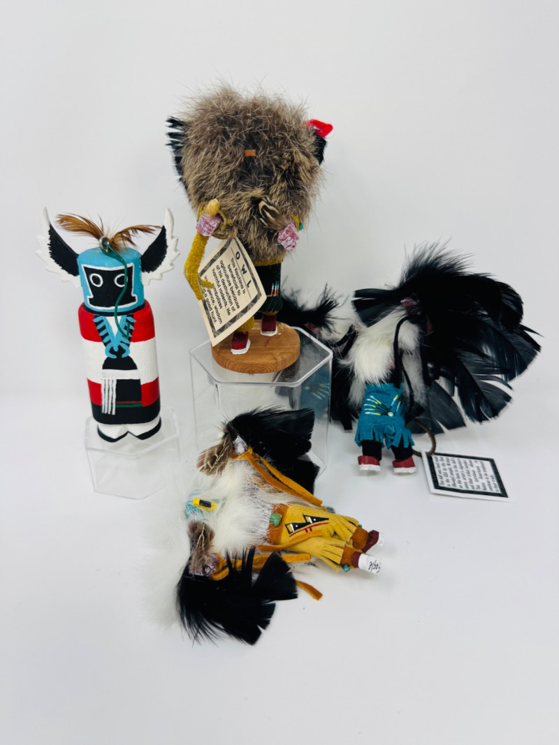 Lot # 85 - 4 Navajo Kachina Dolls – Eagle Dancer, Owl & Crow Mother Styles