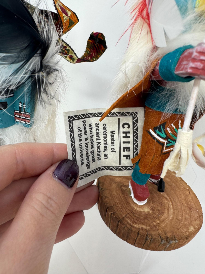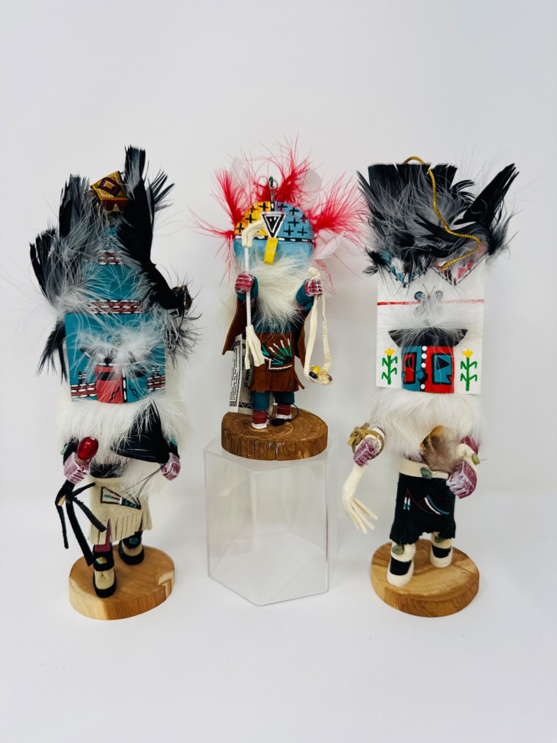 3 Navajo Kachina Dolls – Chief, Butterfly & Hemis Styles, Signed.