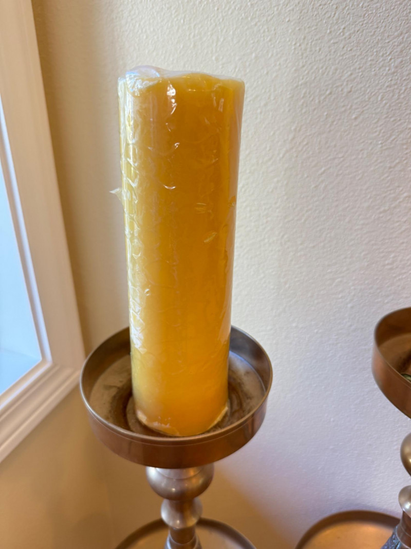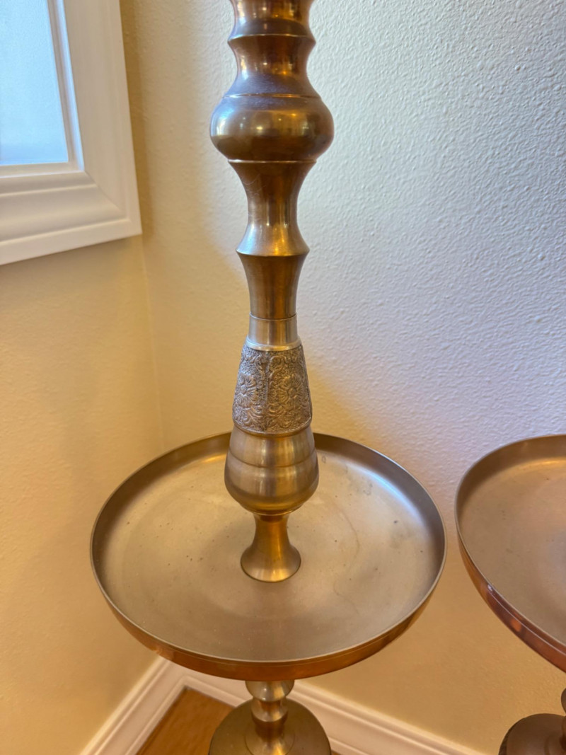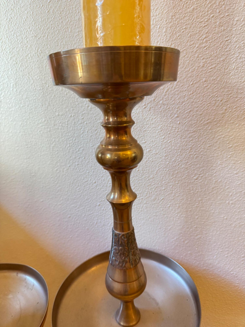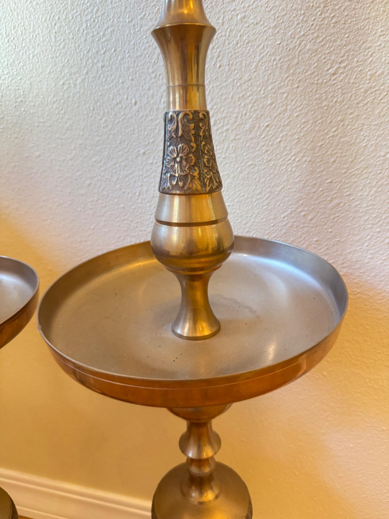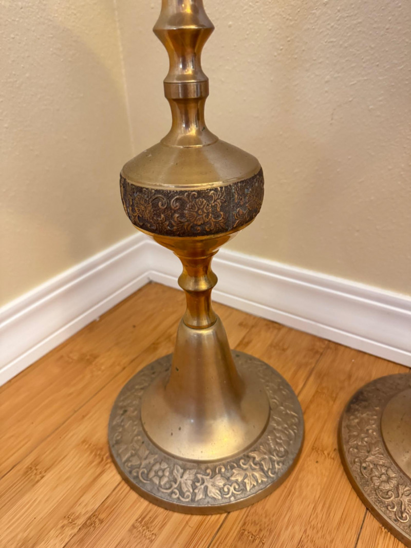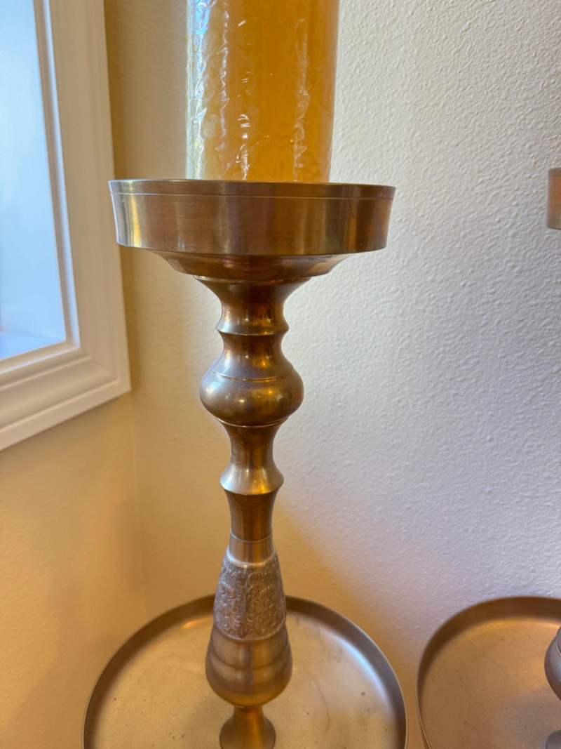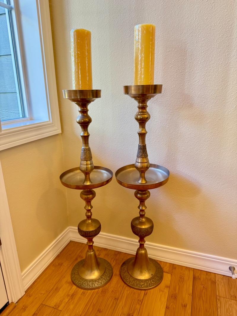 Pair of Tall Brass Candle Holders w/ Etched Detail – 32".