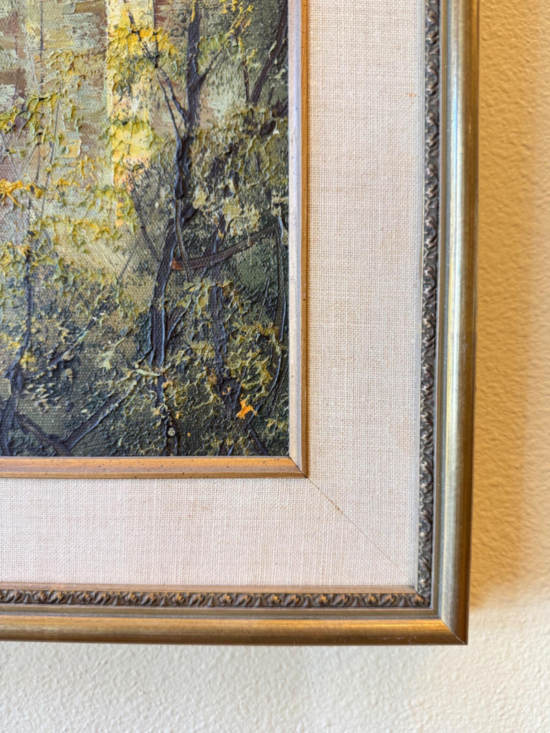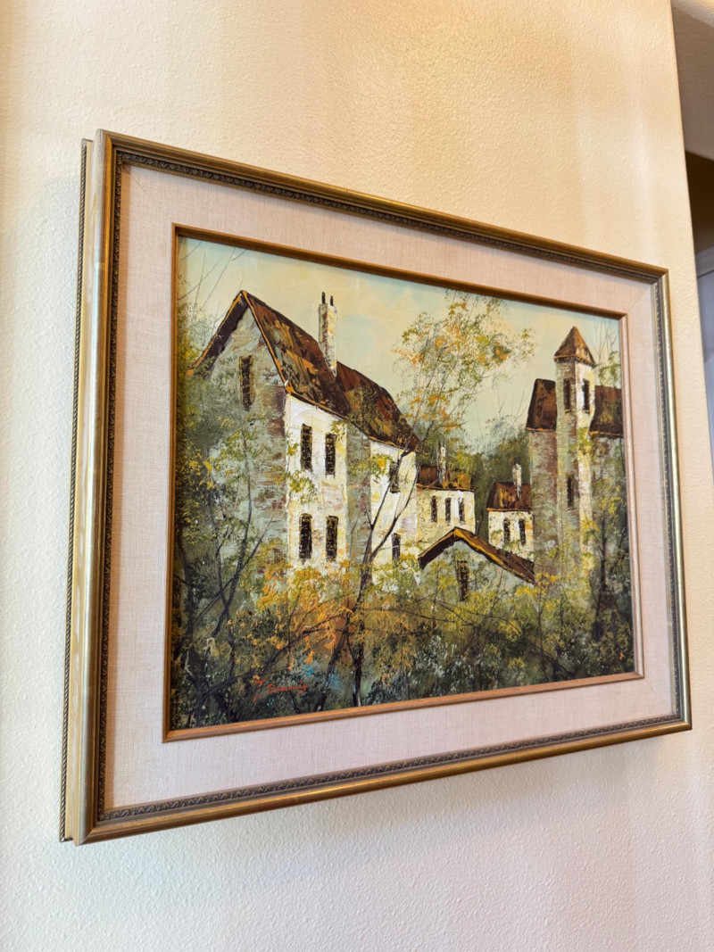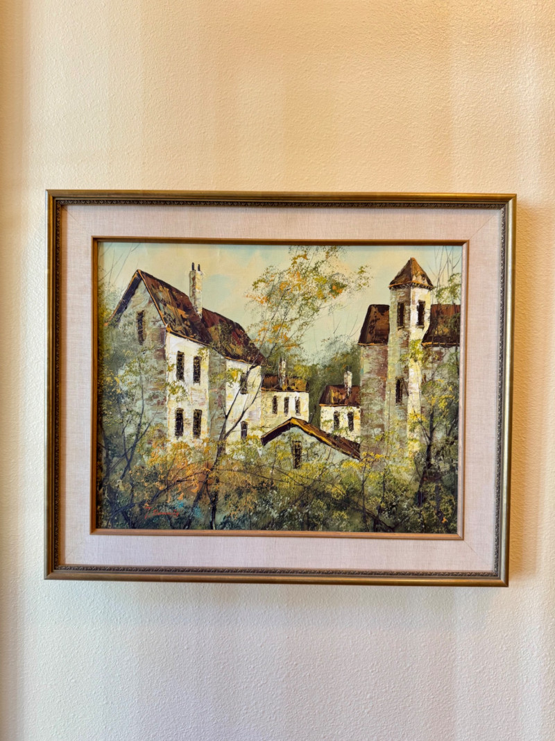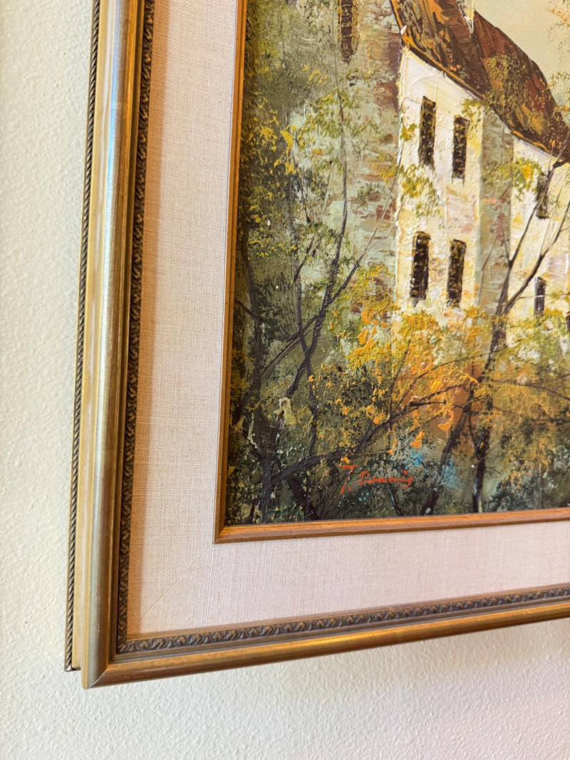 T. Dennis Signed Original Oil Painting – Village Houses.
