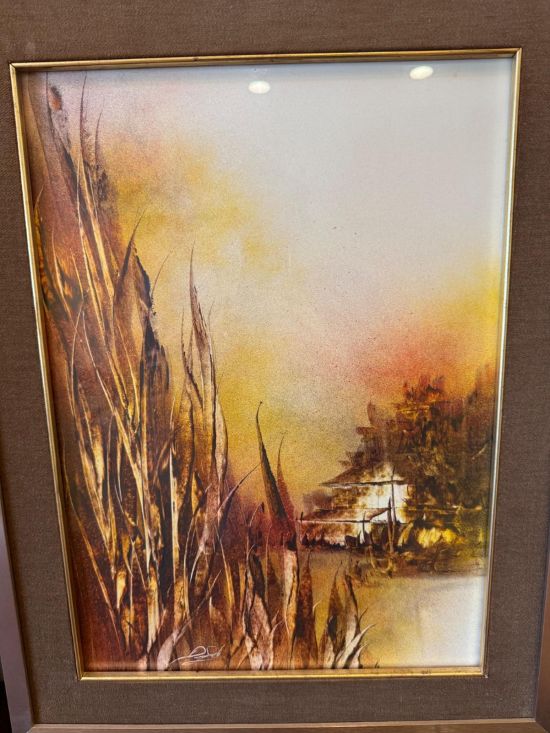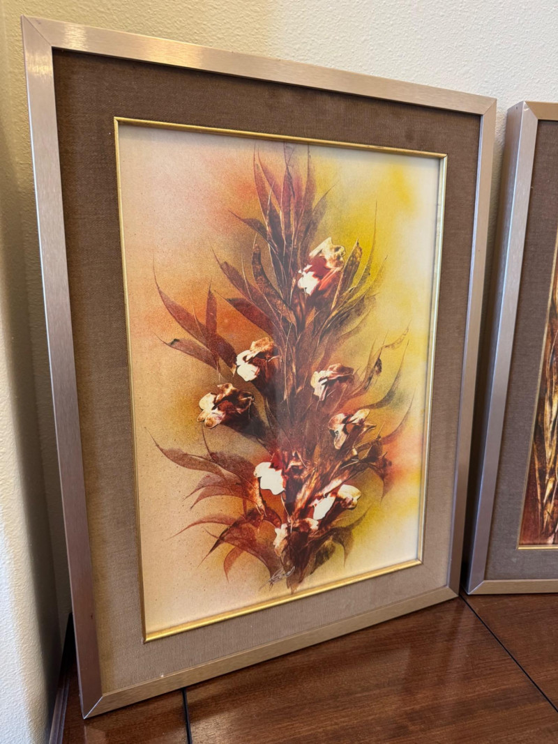 Lot # 95 - Pair of Mid Century Signed Paintings w/ Velvet Mats & Metal Frames