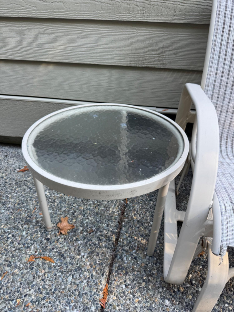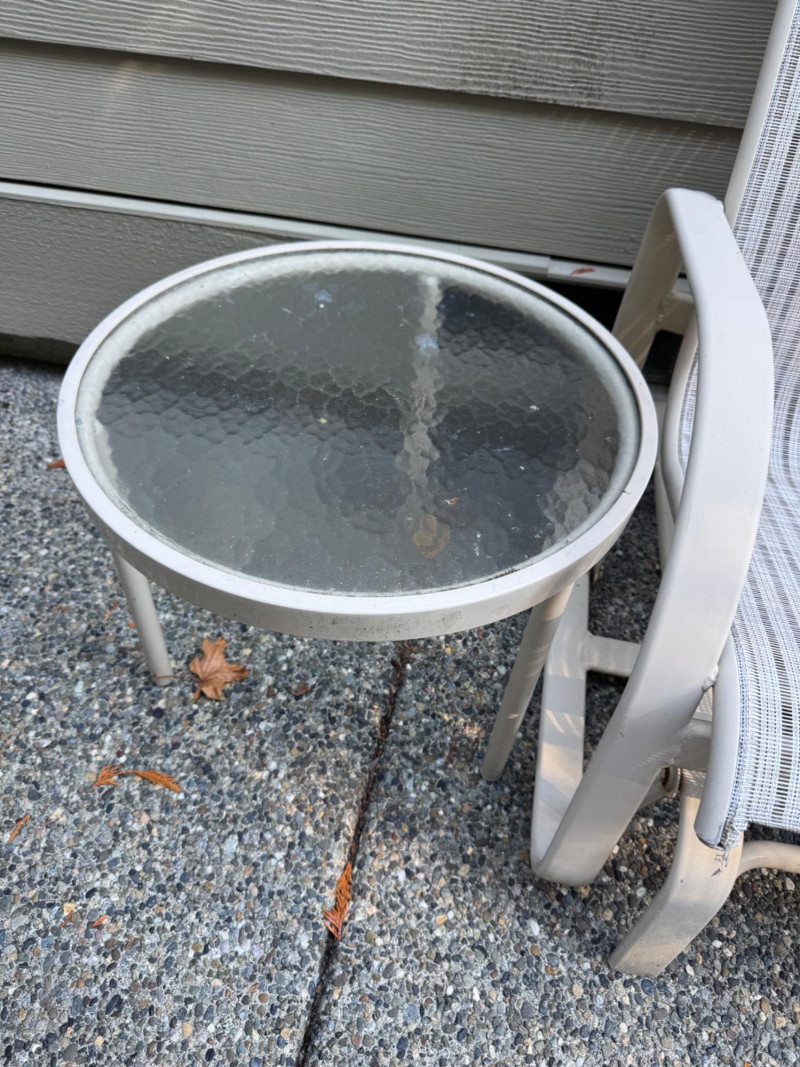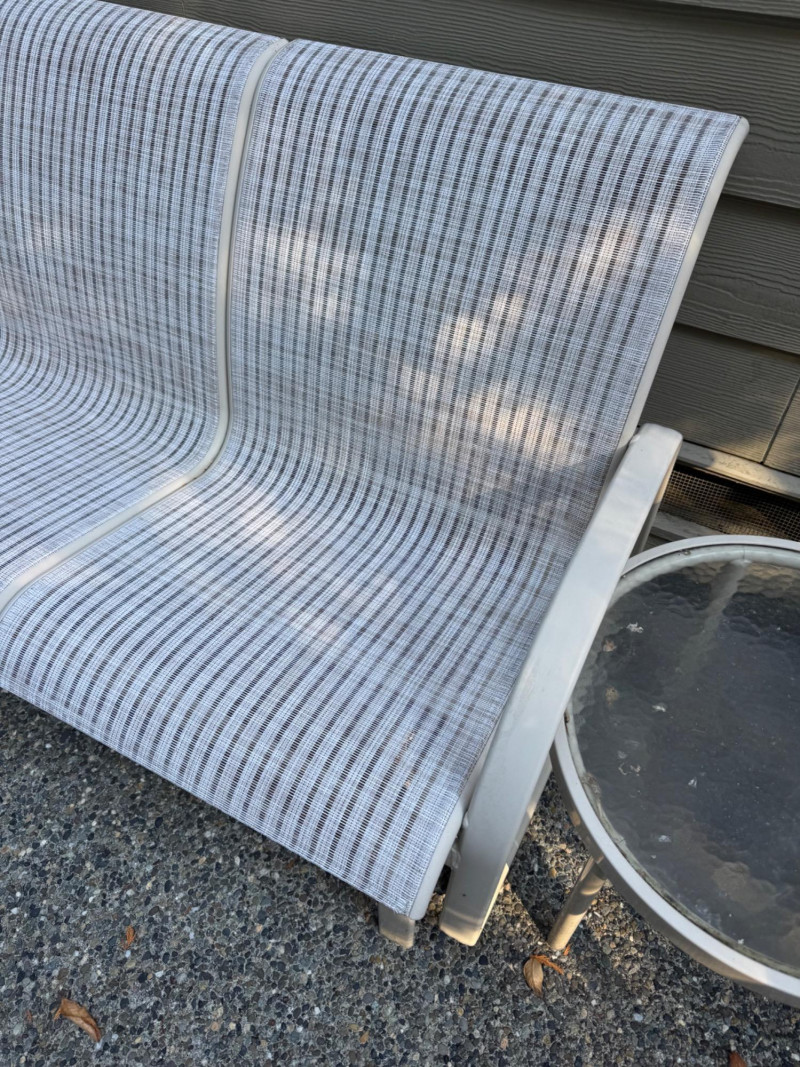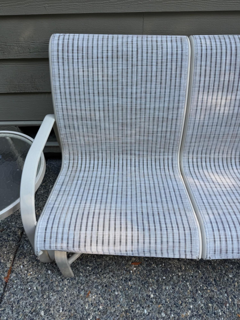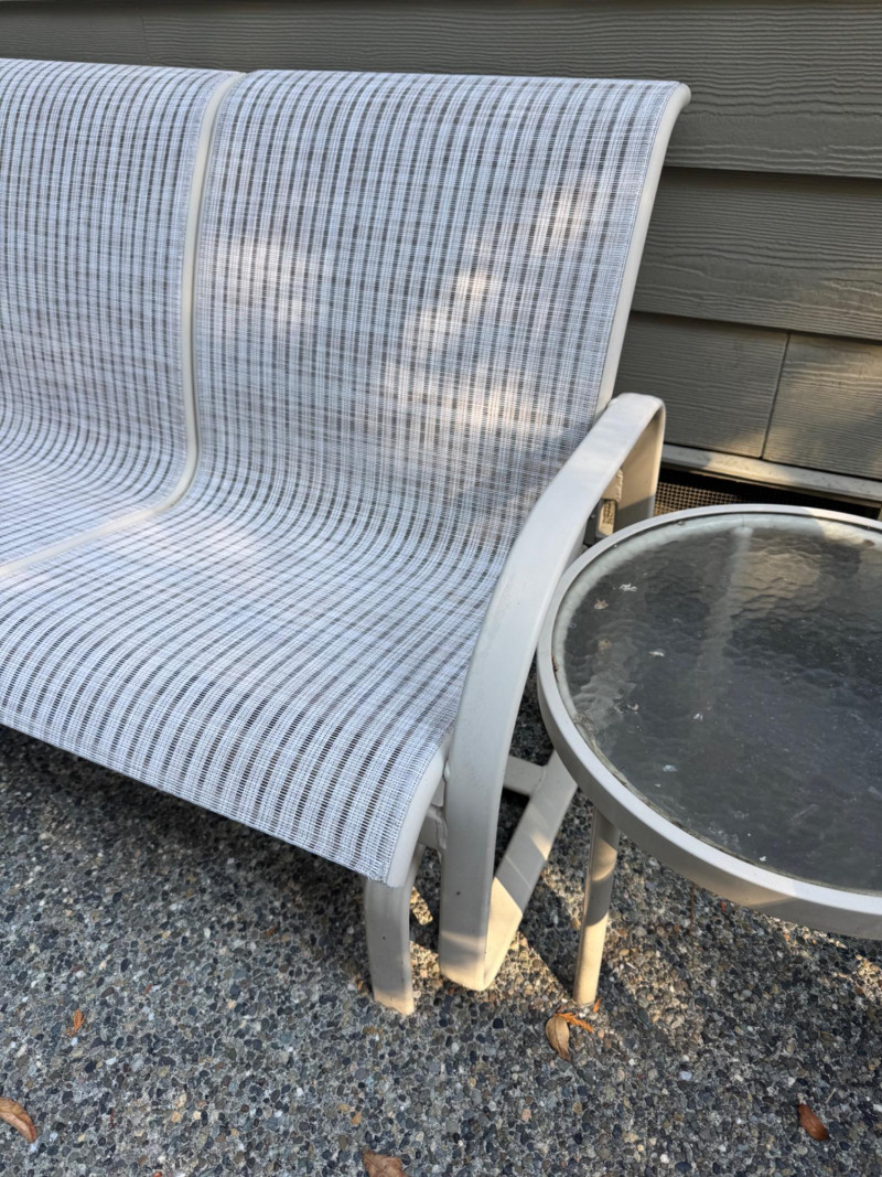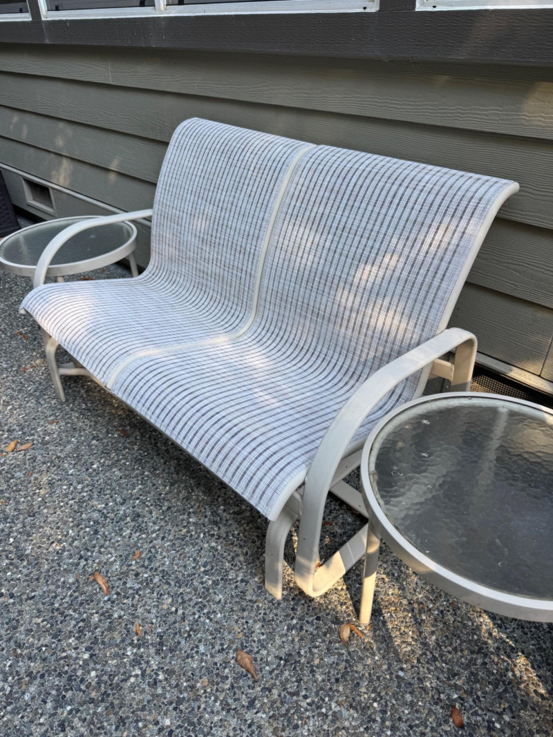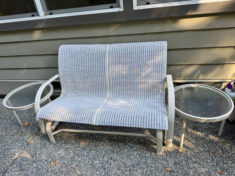 Outdoor Love Seat Rocking Glider w/ 2 Glass Top Side Tables.